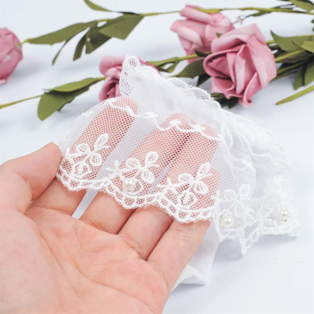 تشمل العبوة: جوارب كاحل مكشكشة من الدانتيل اللؤلؤي للنساء