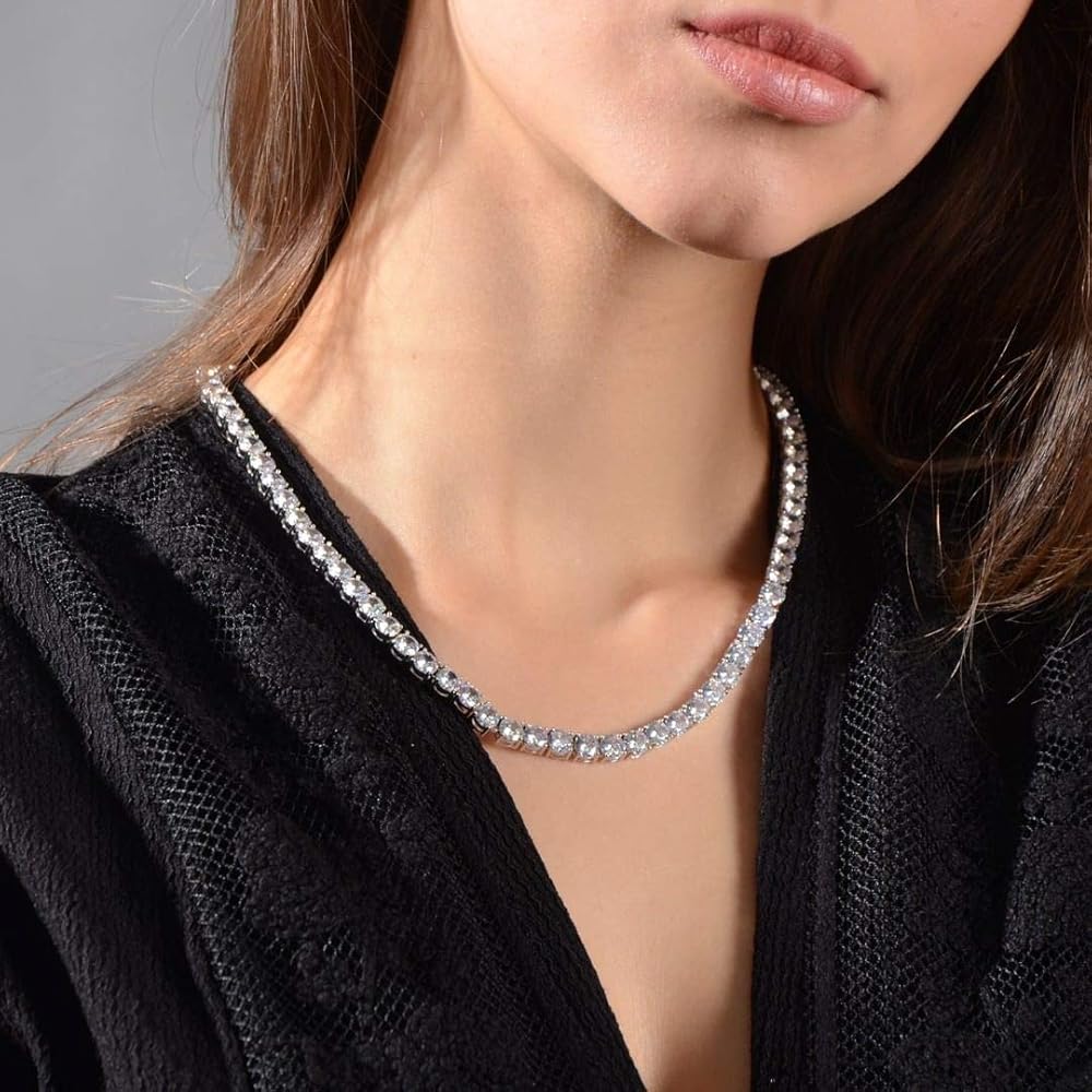 TOPGRILLZ قلادة تنس للنساء قلادة سلسلة تنس للرجال سلسلة فضية الماس رابط التنس قلادة 14K مطلية بالذهب مثلج خارج صف واحد 3/4/5/6 مم قلادة زركونيا مكعب