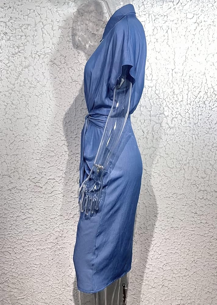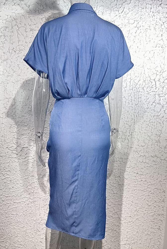 المزايا: فستان نسائي على شكل قميص من الدنيم الأزرق، يتميز بأزرار أحادية الصدر، فستان متوسط الطول مثير من الدنيم، فستان بخصر مربوط. الكشكشة الأمامية تخفي بطنك بمهارة وتضفي لمسة جمالية على منحنياتك الأنثوية، نمط ميدي يكمل مظهر الموضة، فساتين خصر ملفوفة، ملابس الشارع ونمط الدنيم القديم، فستان نسائي قصير الأكمام من الدنيم للصيف