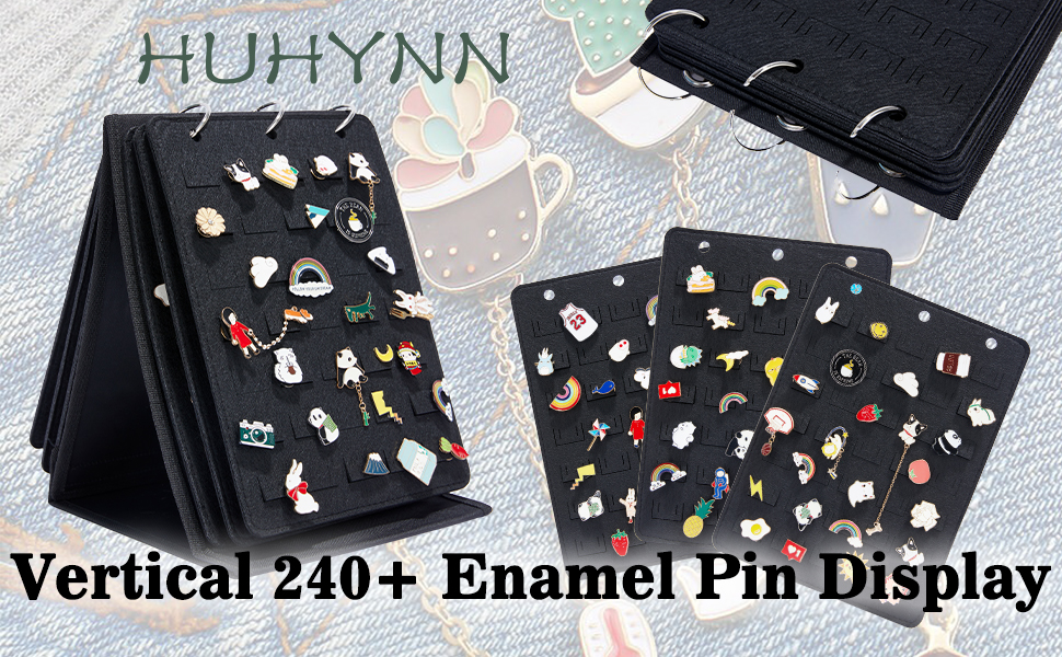 كتاب عرض دبوس المينا من HUHYNN مع 6 صفحات، كتاب تداول دبوس محمول لتخزين أكثر من 240 دبابيس مينا، منظم دبوس بروش وتخزين لمجموعة الدبابيس