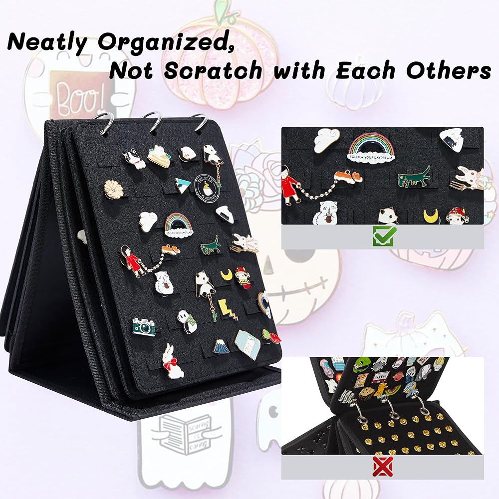 لا غنى عنه لعشاق دبابيس المينا: يُعد عرض كتاب دبابيس التداول الخاص بنا هدية ممتازة لأي شخص يحب جمع الدبابيس. يضمن تصميمها الأنيق ووظيفتها العملية الاحتفاظ بجميع مجموعات الدبابيس في مكان واحد لعرضها بشكل جميل في المنزل.