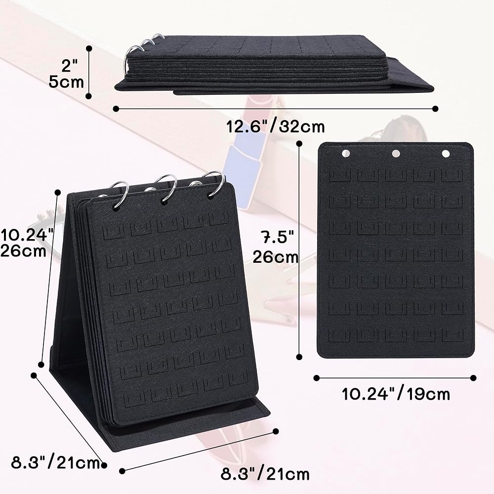 الحجم: حامل منظم دبوس بروش: 8.27 × 8.27 × 10.24 بوصة / 21 × 21 × 26 سم؛ كل صفحة: 7.48 × 10.24 بوصة/19 × 26 سم؛ شاشة عرض دبوس المينا المكونة من 6 صفحات مناسبة جدًا لتناسب حقيبتك أو حقيبة الظهر أو الأمتعة للخروج أو السفر من خلال حمل منظم دبوس بروش ذو الثلاث حلقات.