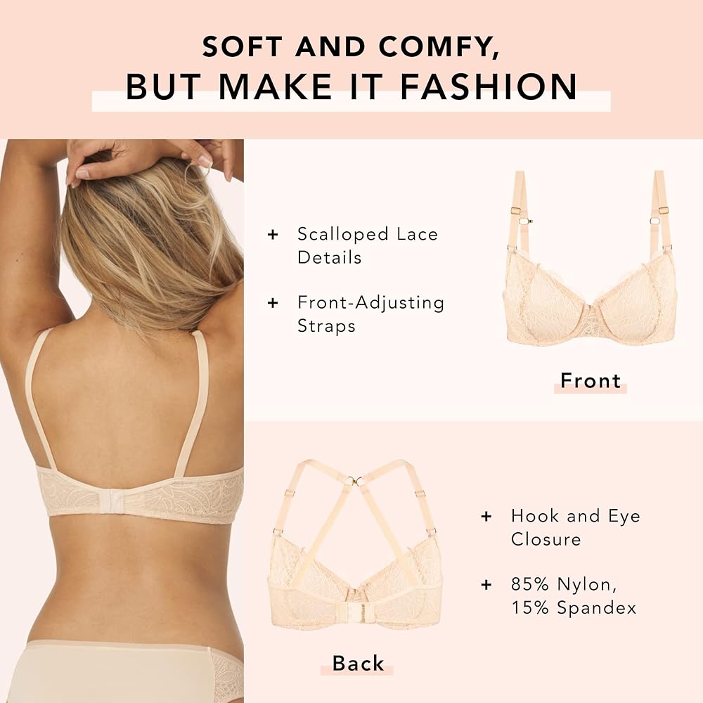 حمالة صدر من الدانتيل غير المبطنة: مع تفاصيل من الدانتيل على شكل صدفي على الحواف، تتميز حمالة الصدر غير المبطنة ذات الطراز العالي بالثقة المكتوبة في كل مكان مع تنفس ومريح يلتقي بأجواء مثيرة