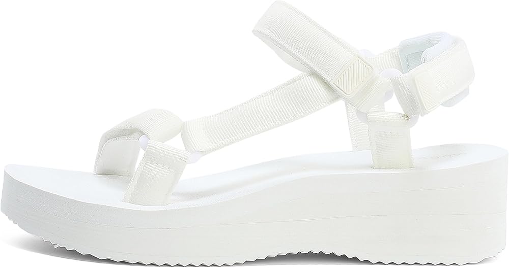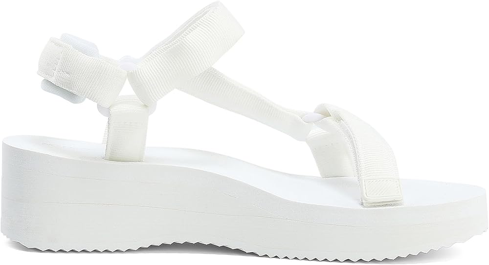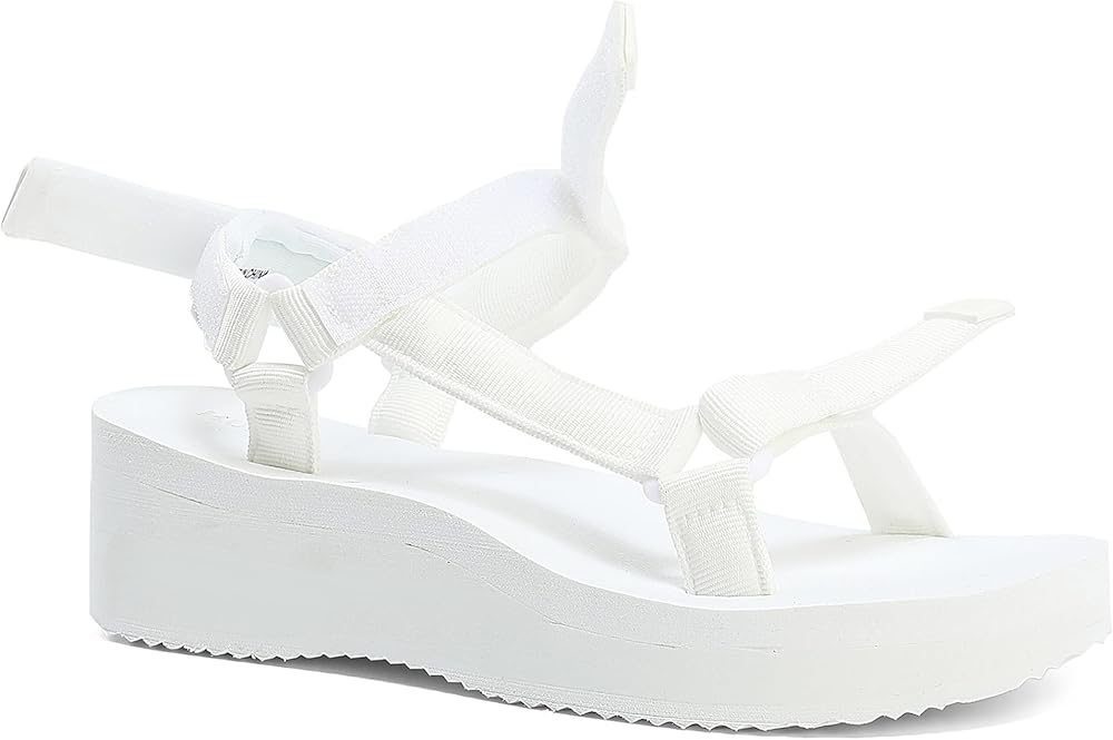 صنادل نسائية ذات نعل سميك كاجوال بكعب عريض قابل للتعديل مع شريط فيلكرو لدعم قوس اليوجا وكعب مسطح