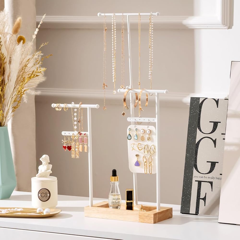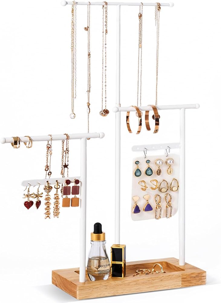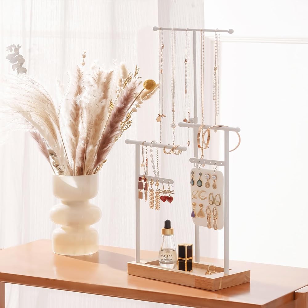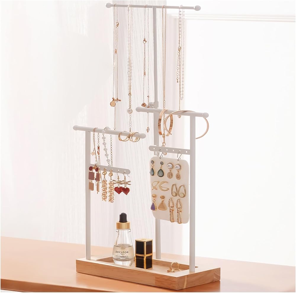 ✅ سهلة التجميع للغاية - يستغرق تجميعها أقل من دقيقتين، ويمكنك لف القضبان المعدنية في اتجاهات مختلفة للحصول على حامل مجوهرات جديد بنمط مختلف.