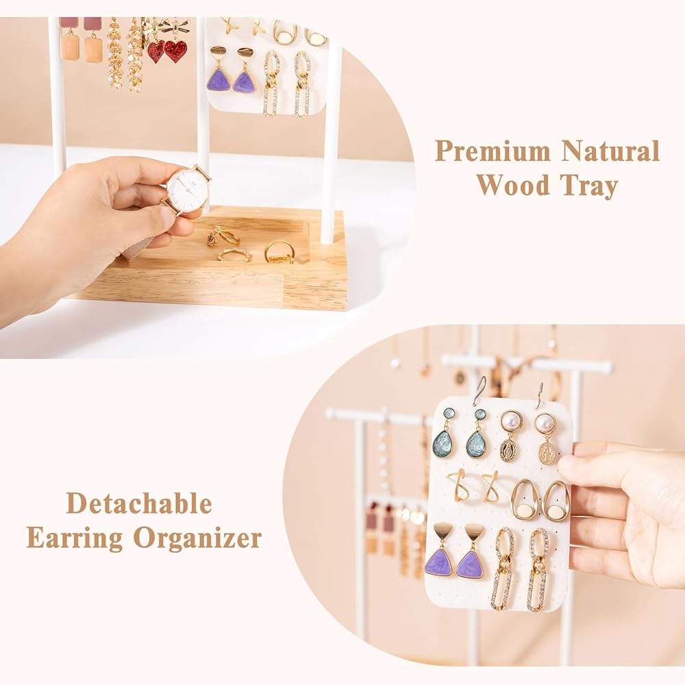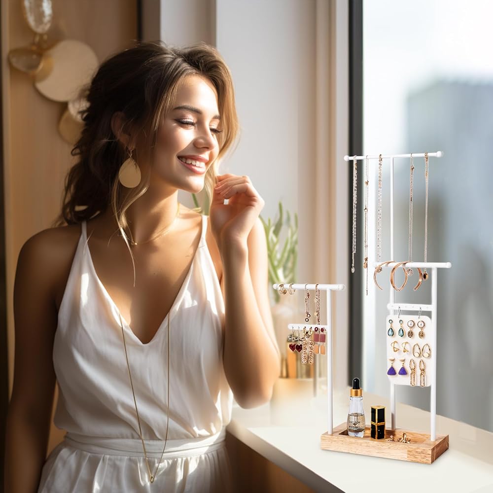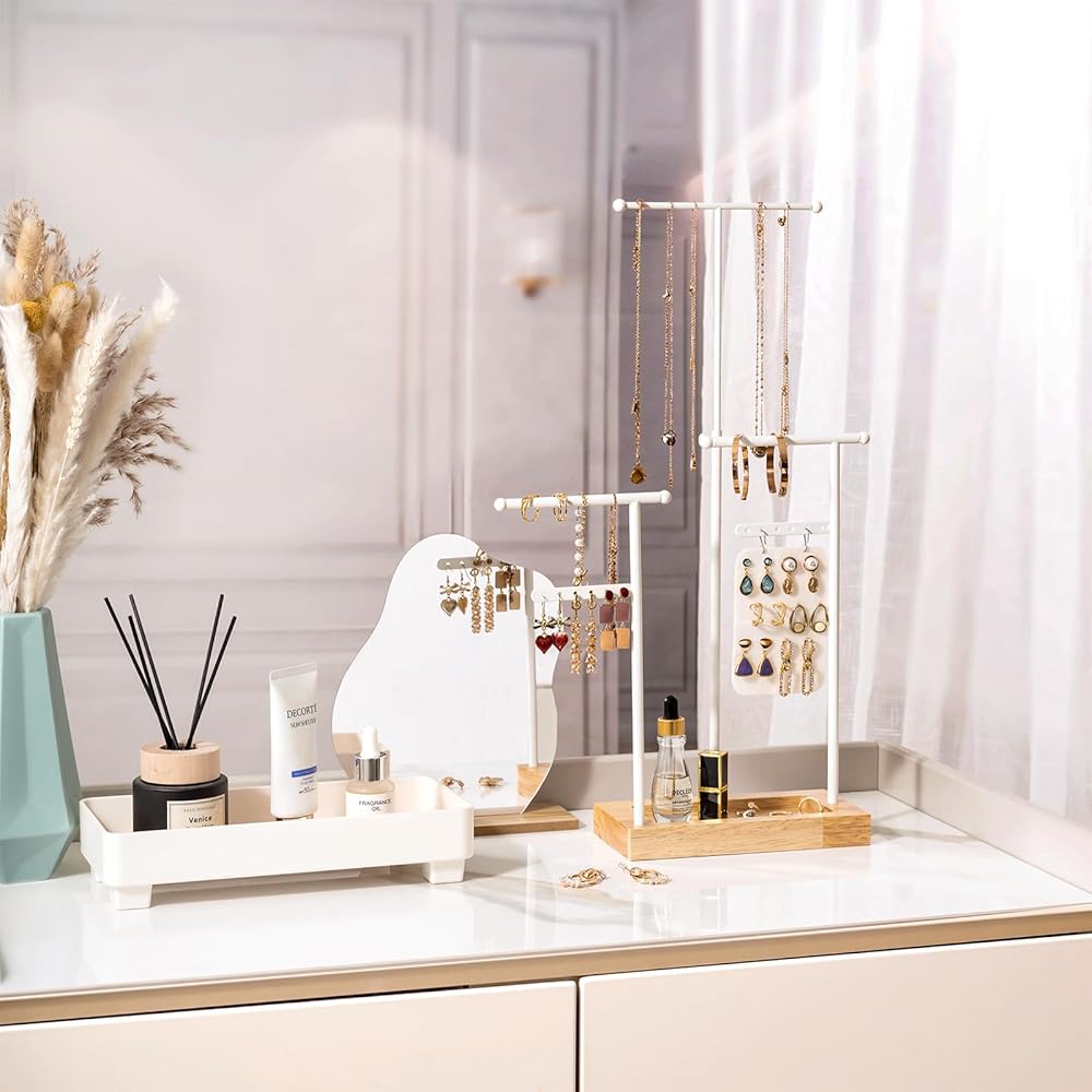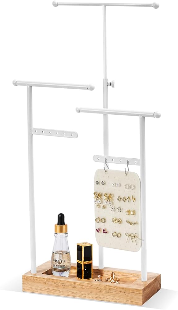 ✅ سهلة التجميع للغاية - يستغرق تجميعها أقل من دقيقتين، ويمكنك لف القضبان المعدنية في اتجاهات مختلفة للحصول على حامل مجوهرات جديد بنمط مختلف.