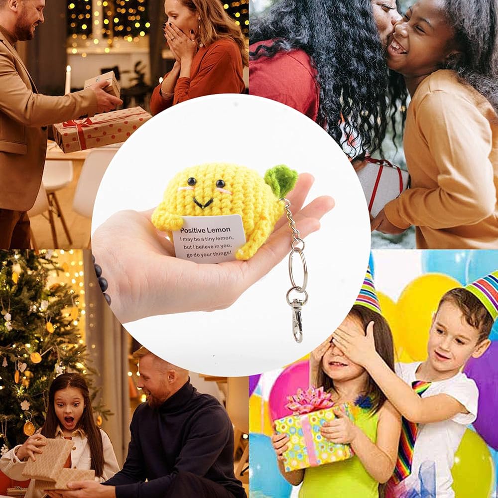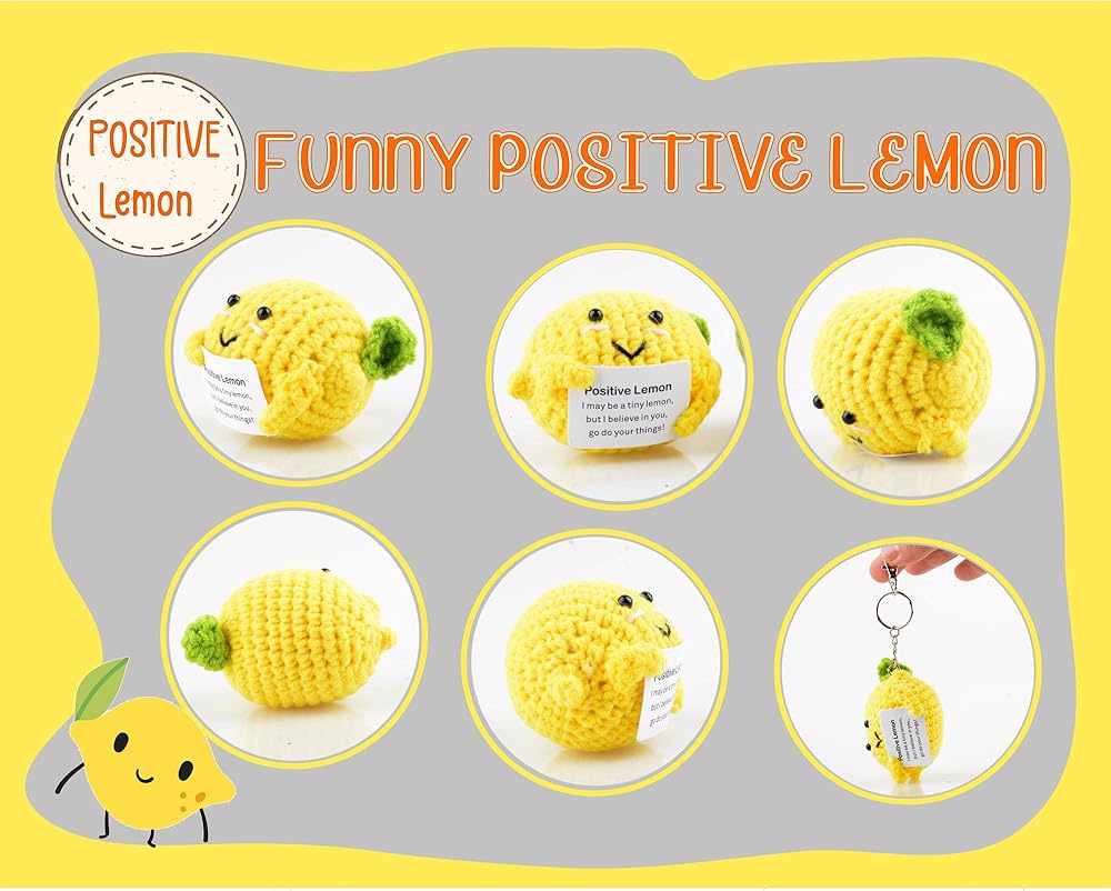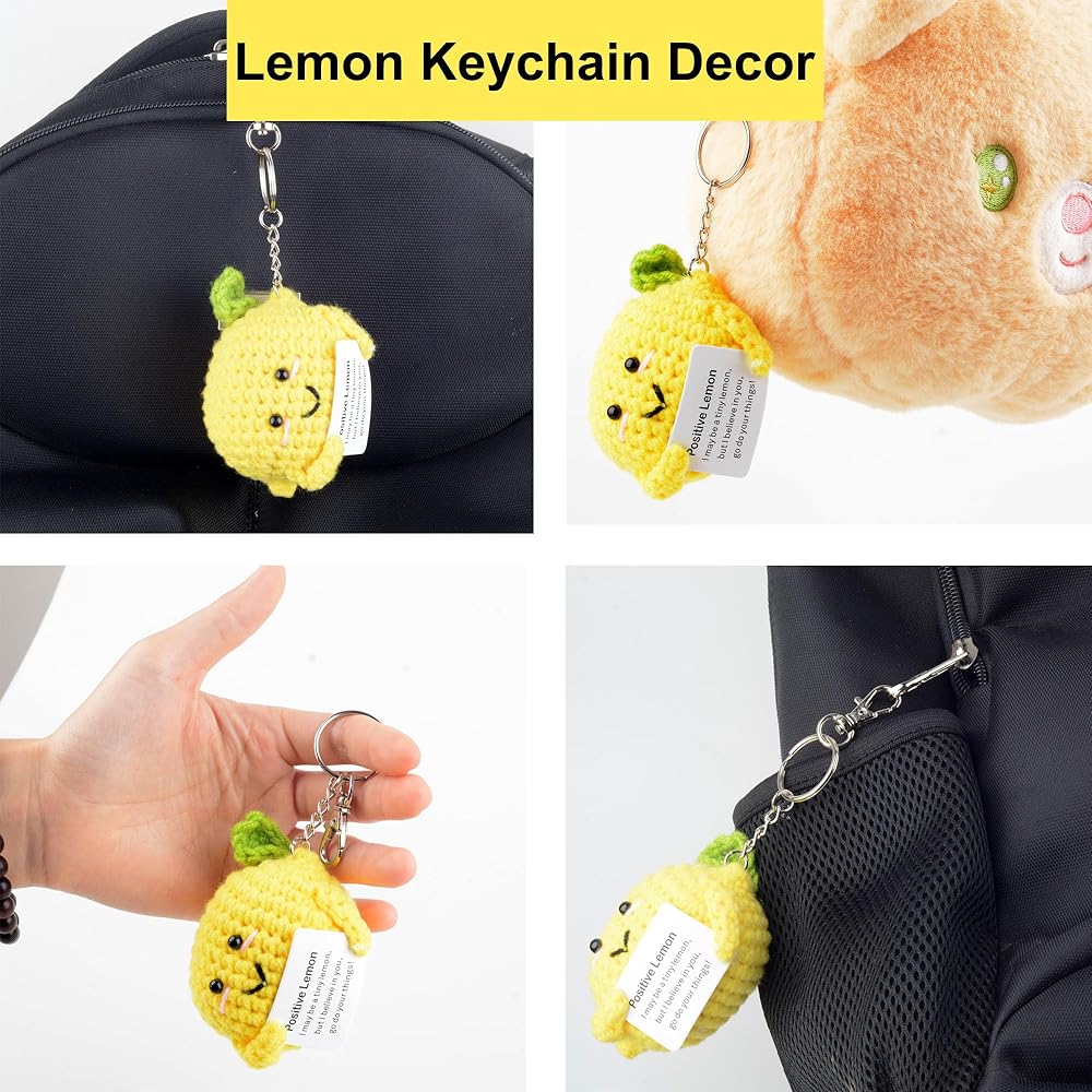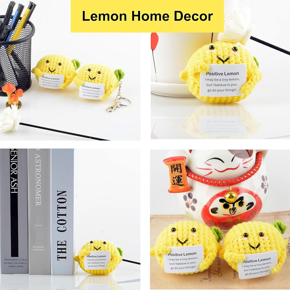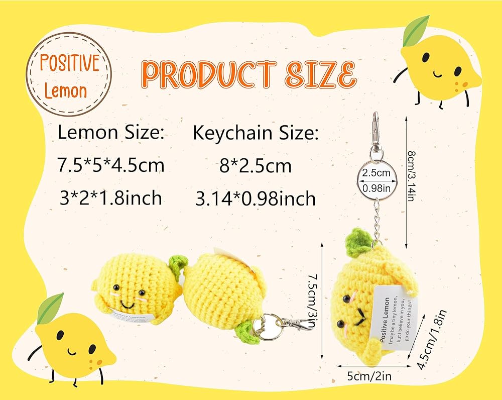 ما ستحصل عليه: سوف تحصل على ليمون إيجابي محبوك وسلاسل مفاتيح وبطاقة مع الكلمات المشجعة'Positive lemon I may be a small lemon,but I believe in you.Go افعل ما يناسبك! "يتم لصقها على دمية الليمون الإيجابية.