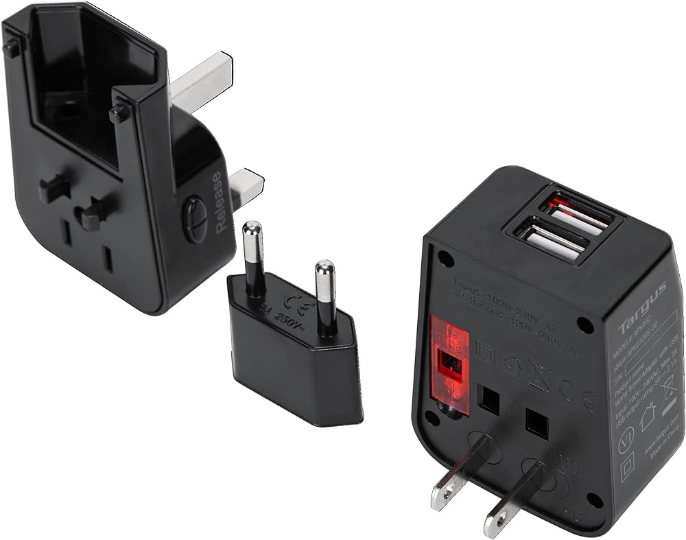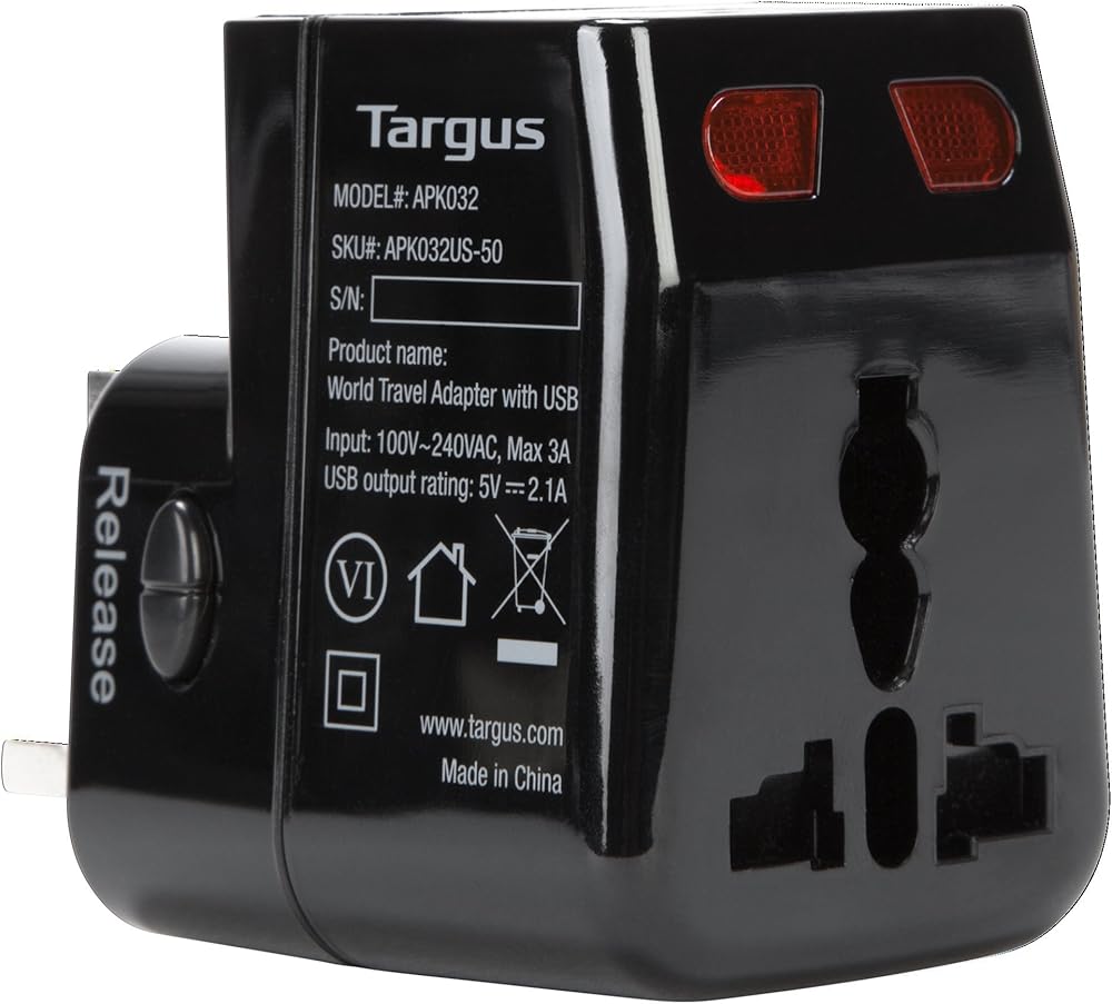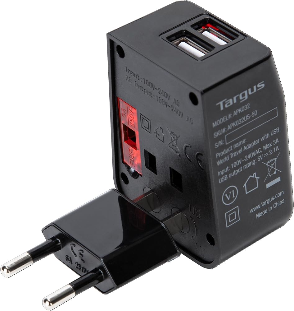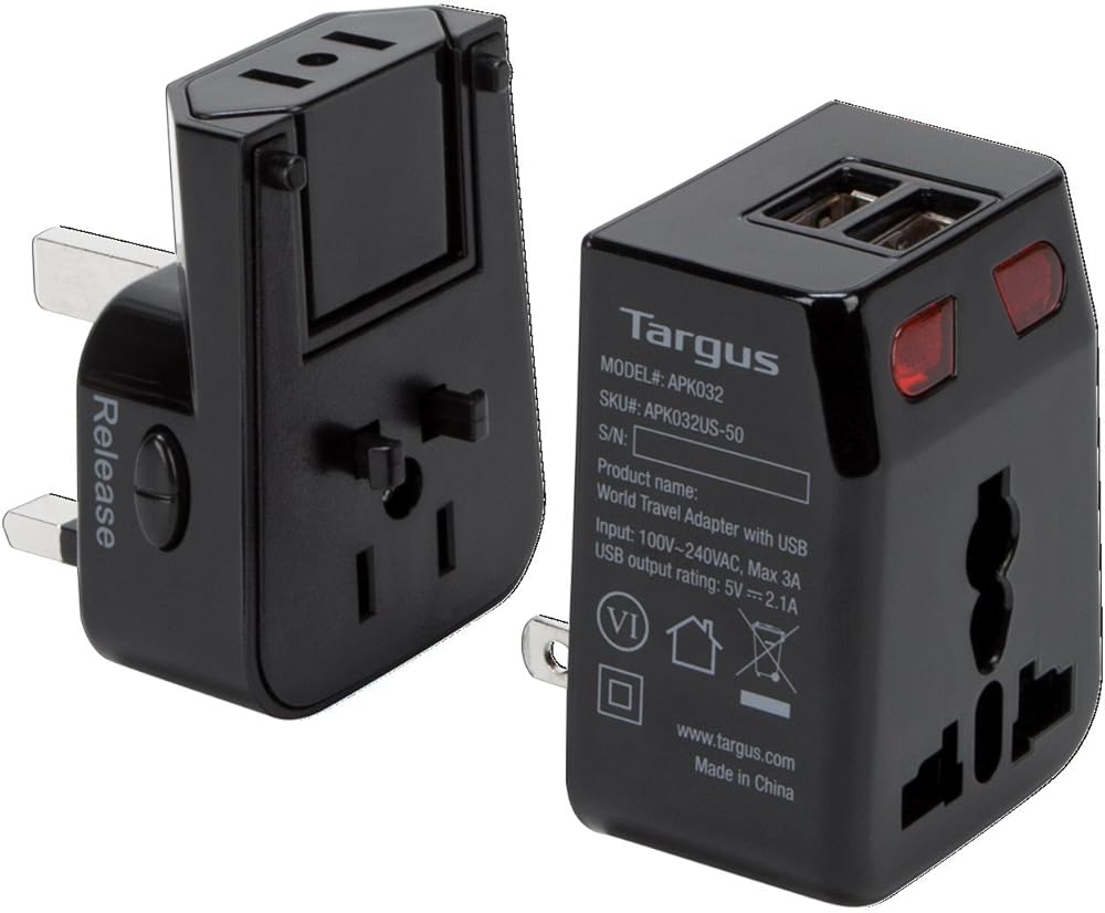 تارغوس محول طاقة للسفر العالمي مع منافذ شحن USB مزدوجة للاب توب او الجوال او التابلت او الاجهزة المحمولة الاخرى (APK032US)