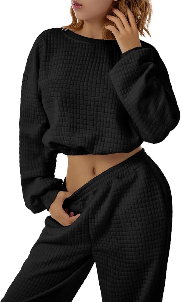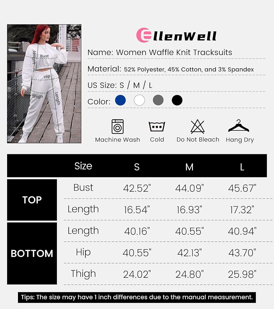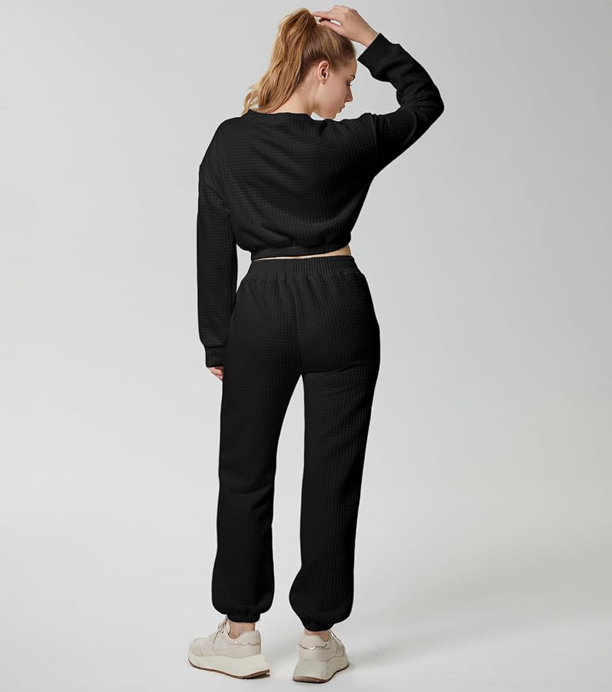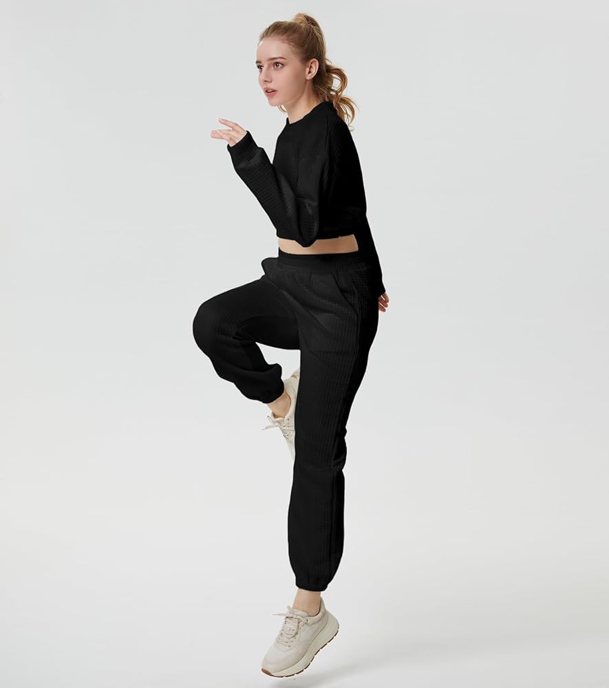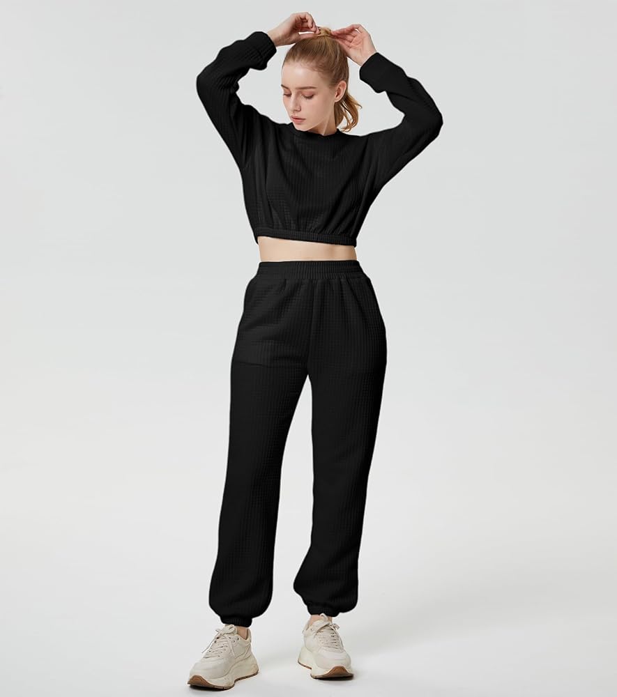 طقم نسائي من ELLENWELL مكون من قطعتين بأكمام طويلة مبطن وسراويل رياضية عالية الخصر