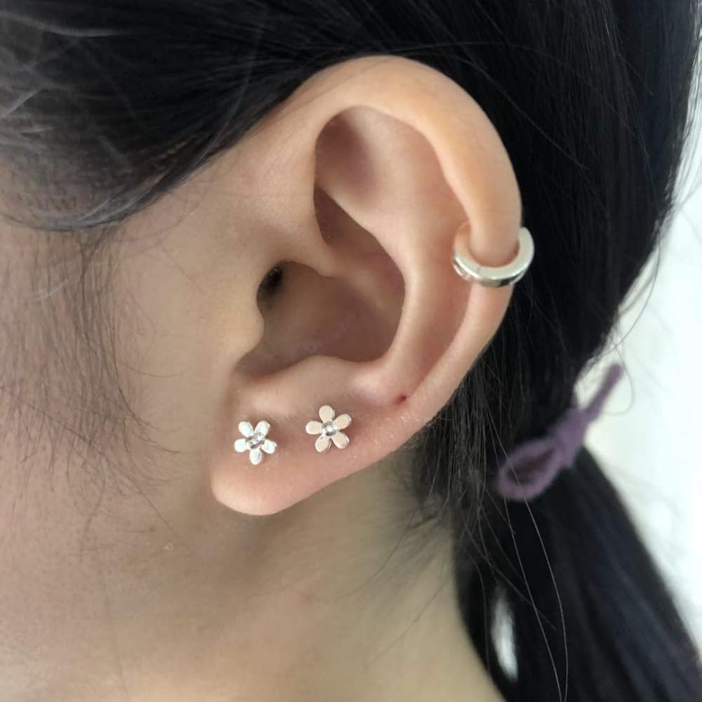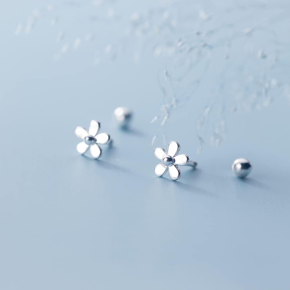 الحد الأدنى 18 جرام ديزي زهرة وأقراط S925 الفضة الاسترليني أنيقة صغيرة صغيرة غضروف الأسطورة القرط الأذن ثقب المسامير هيليكس الحديد هيبوالرجينيك للنساء الفتيات