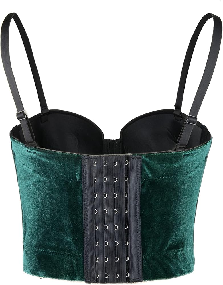تخطى المحادثة واجلب الدفء في هذا الصدرية السوداء المثيرة! يحتوي هذا الجزء العلوي ذو الطراز الصدري على أحزمة كتف قابلة للتعديل والفصل، وخط عنق على شكل قلب، وأكواب مبطنة مع سلك داخلي وحلقات معدنية، وظهر مكشوف مع خطاف من ثمانية صفوف وإغلاق للعين. يتكون الجزء العلوي من نسيج مخملي ناعم مع مطاط.