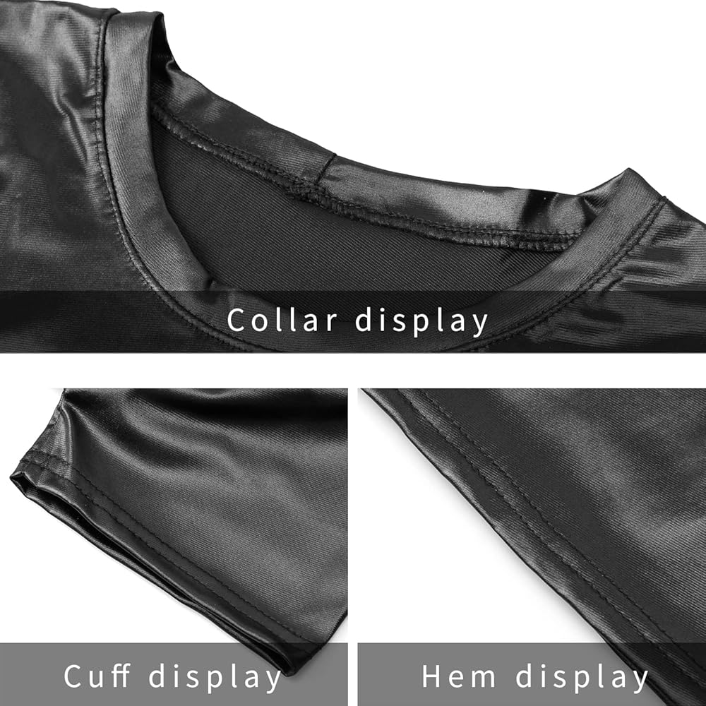 • السمات: تي شيرت Bodycon بمظهر جلدي، تي شيرت برقبة دائرية، تي شيرت قصير صلب بمظهر جلدي قابل للتمدد للغاية، مريح جدًا في الارتداء، مناسب مثل القفاز، تي شيرت صلب أساسي وأنيق
