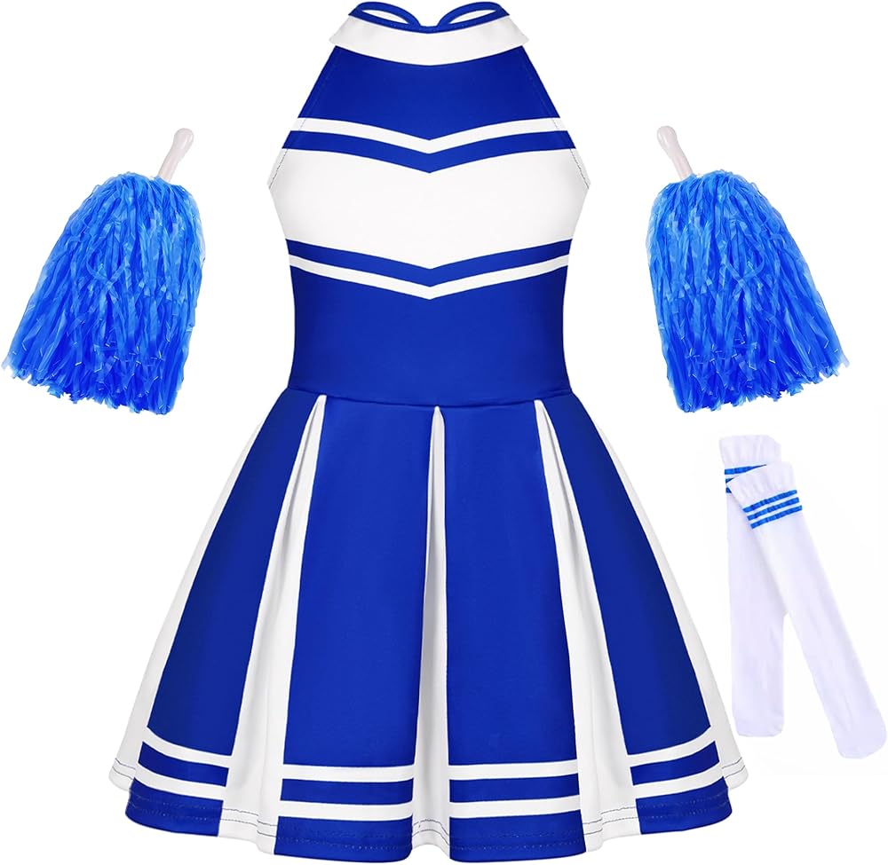 【لون نابض بالحياة للتشجيع】خياران من الألوان لزي مشجعات الأطفال هذا: مشجعة باللون الأزرق والأبيض، وقائدة المشجعة باللون الأبيض والأسود للفتيات من سن 3 إلى 8 سنوات.