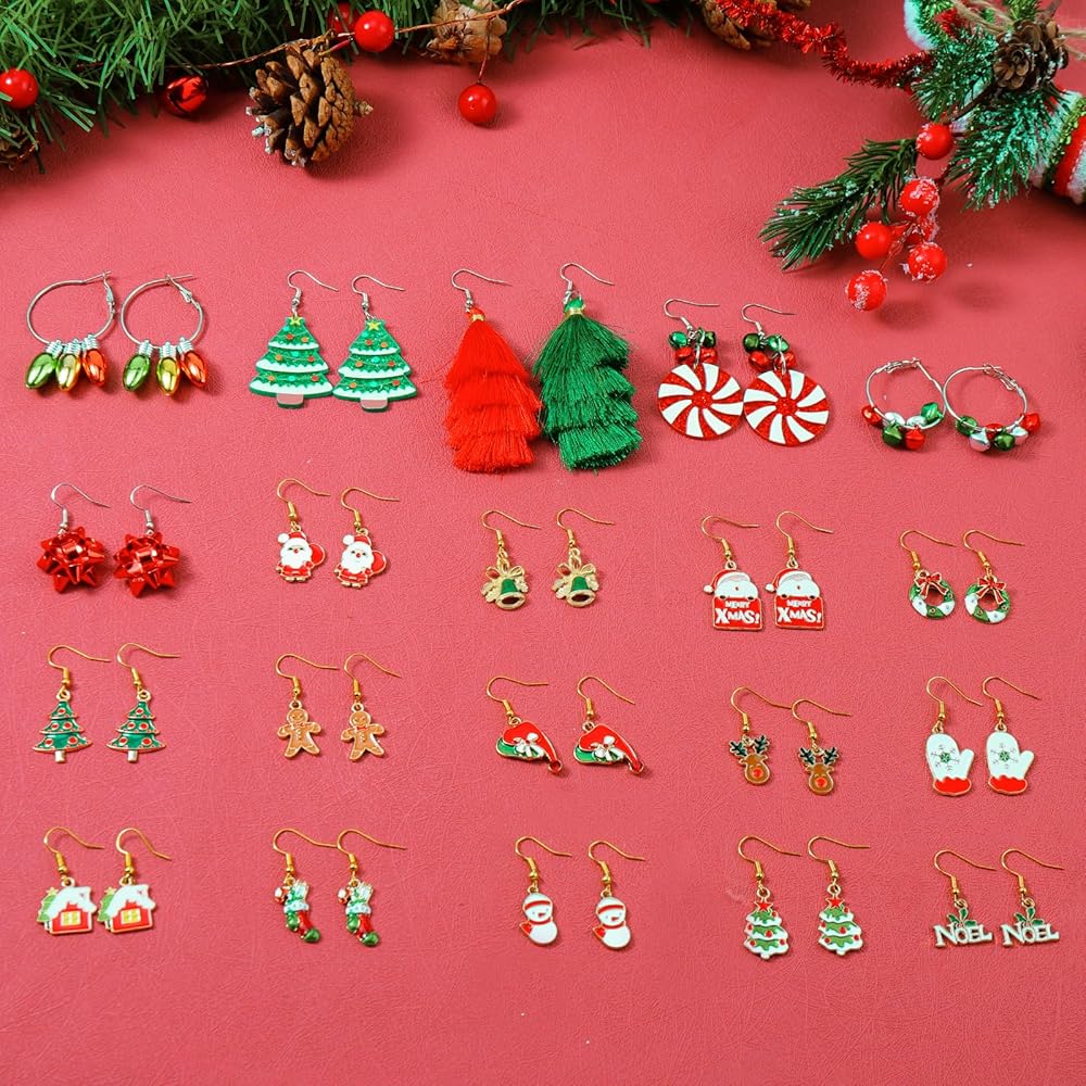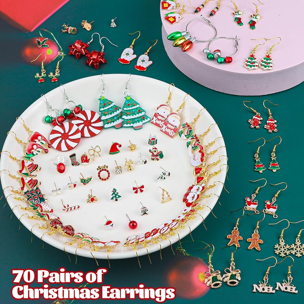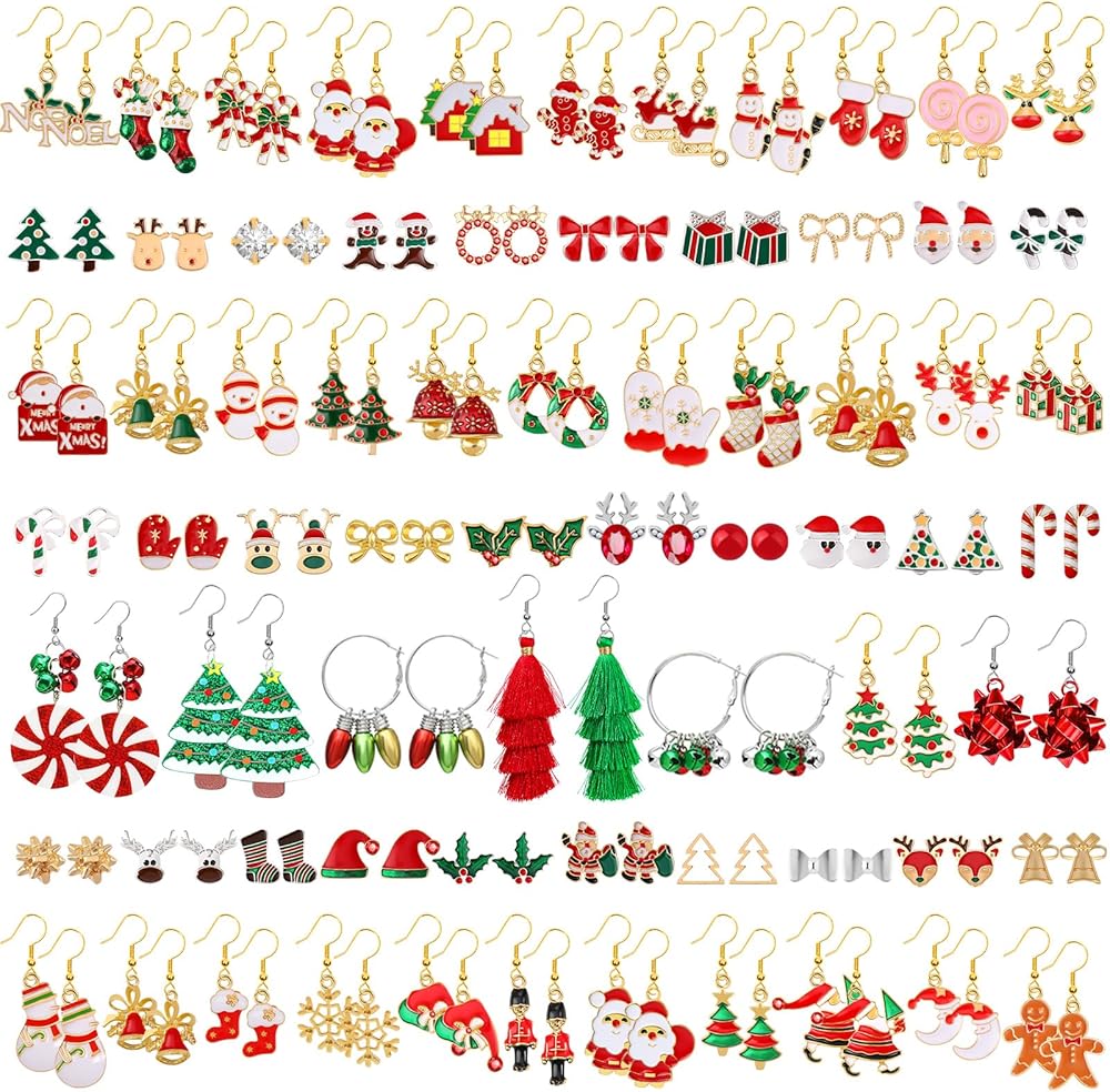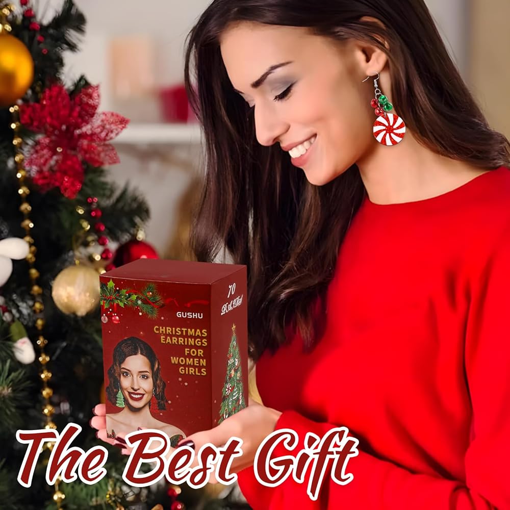 Gushu 70 زوجًا من أقراط عيد الميلاد للنساء والفتيات، هدية عيد الميلاد السائبة للعطلات المتدلية أقراط لطيفة لعيد الميلاد مجموعة هدايا مجوهرات لحفلات عيد الميلاد