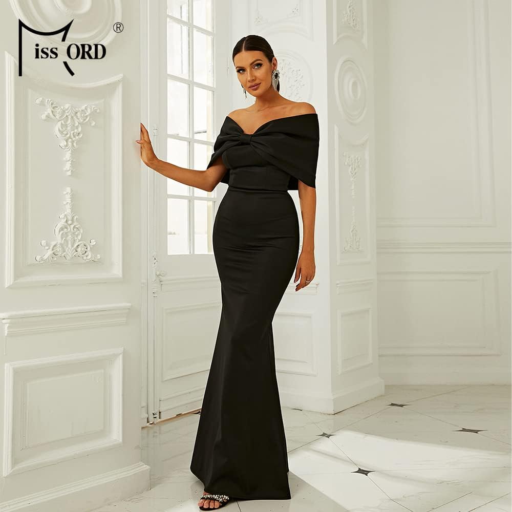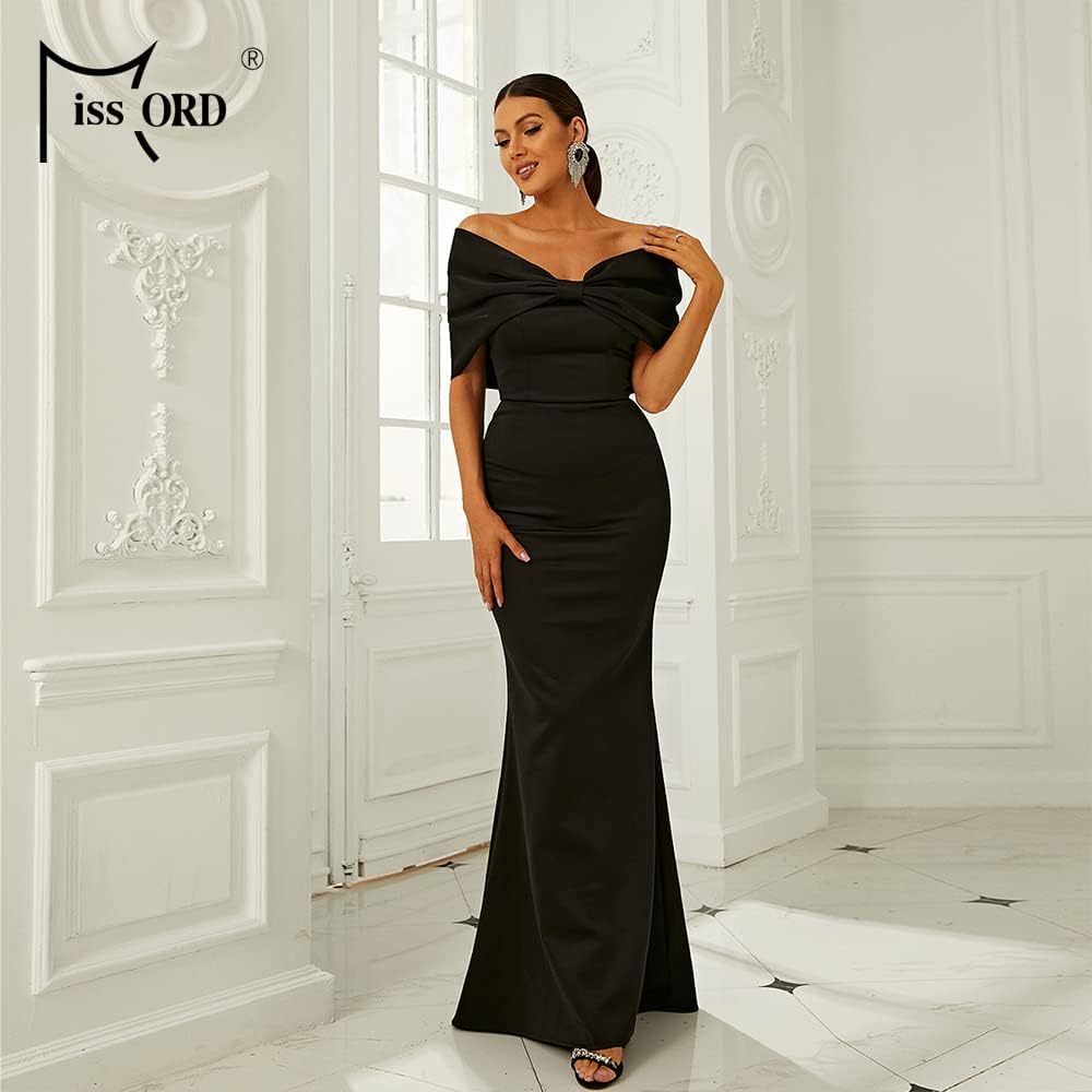 فستان Miss ord نسائي طويل رسمي بدون أكتاف، فساتين حفلات مسائية بحورية البحر نصف كم