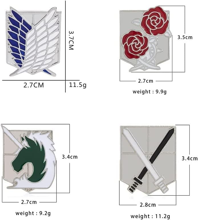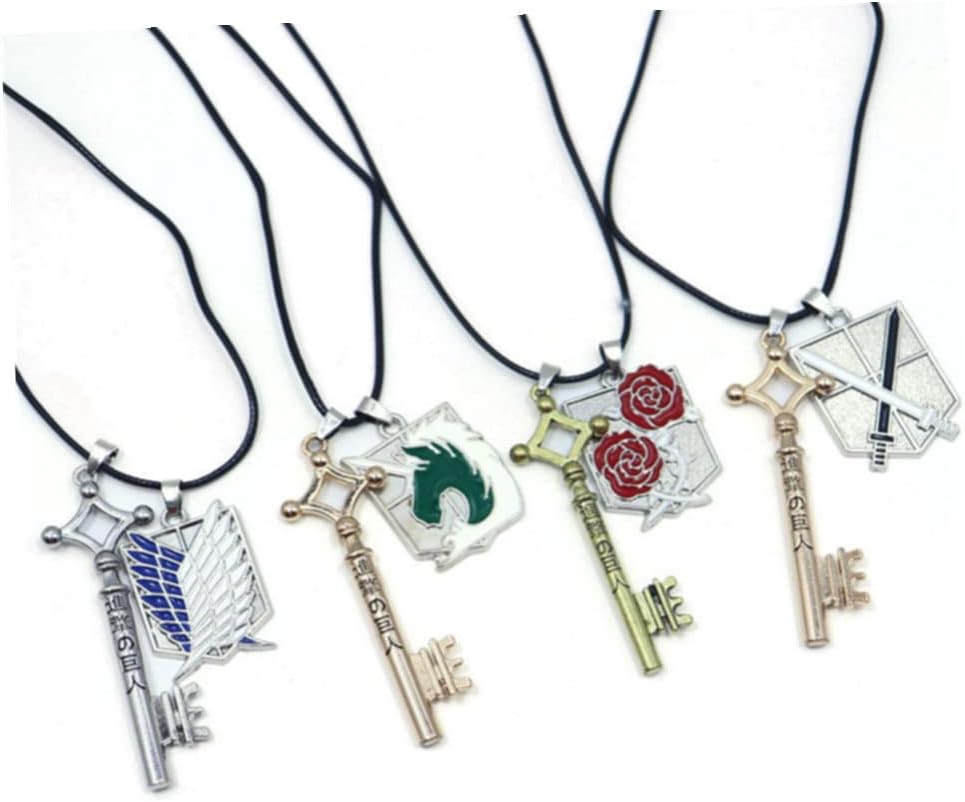 مجموعة من 4 قطع من سلاسل مفاتيح انيمي اتاك ارين جايجر بتصميم اجنحة الحرية / شفرة الحملة الصليبية/حراسة الورود/دلايات يونيكورن لإنفاذ القانون مطلية بالذهب والفضة شينجيكي نو كيوجين تيتان كوسبلاي