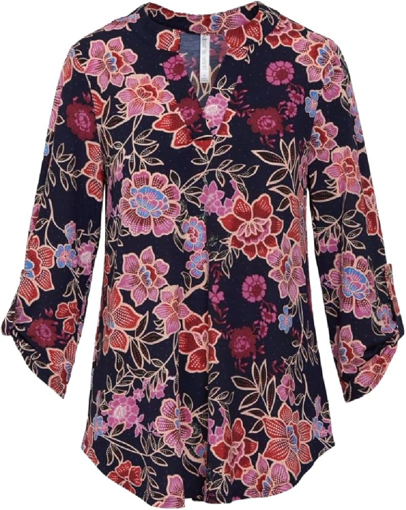 يتميز الجزء العلوي من ليزي المميز بمزيج من البوليستر الذي يتميز بنعومة فاخرة مع راحة خفيفة الوزن وخالية من التجاعيد. هذا الجزء العلوي من القماش سهل العناية به مناسب للسفر، وهو أكثر برودة من الكتان والمواد الأخرى مما يجعله مثاليًا أثناء التنقل. يتميز الجزء العلوي من Lizzy أيضًا بياقة صينية وأكمام بطول 3/4 بوصة مع تفاصيل عروة. المقاس مريح وانسيابي مع ارتفاع طفيف ومنخفض قليلاً.