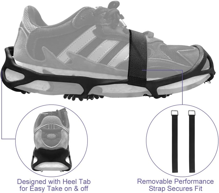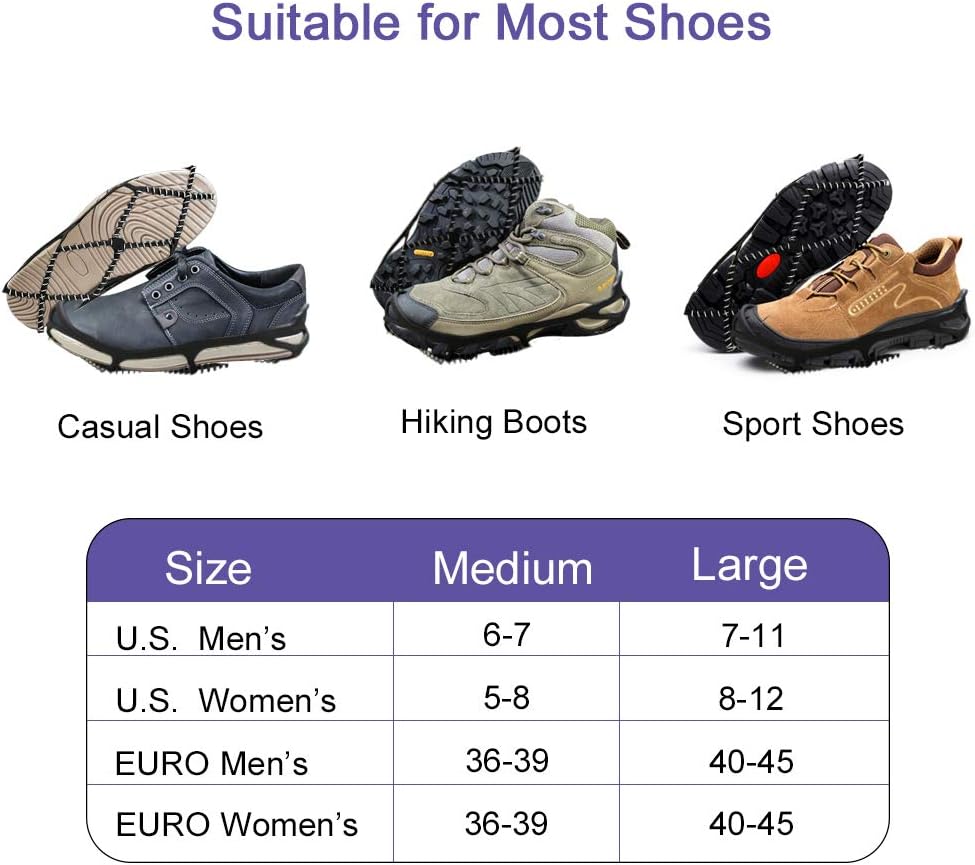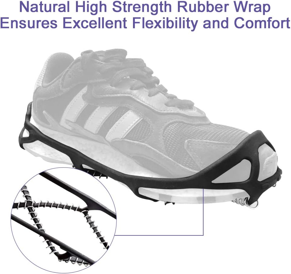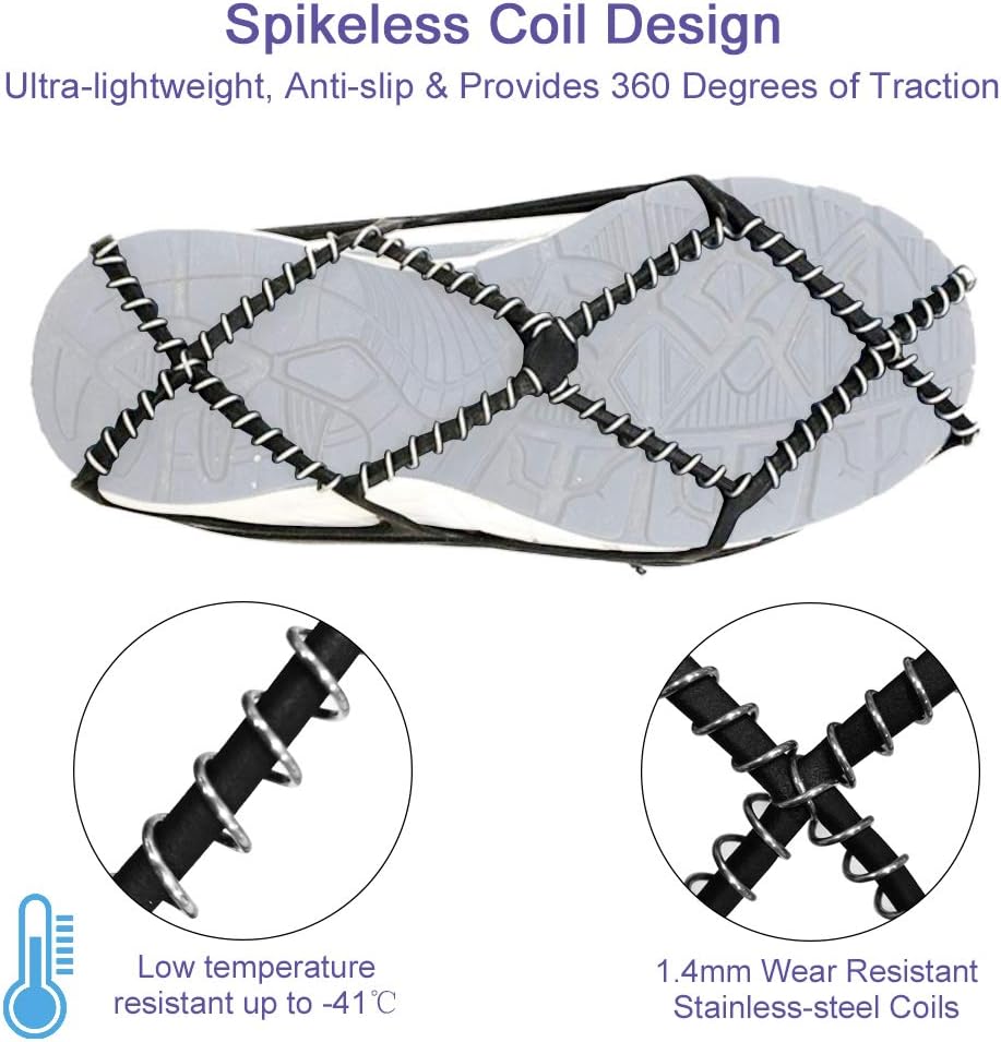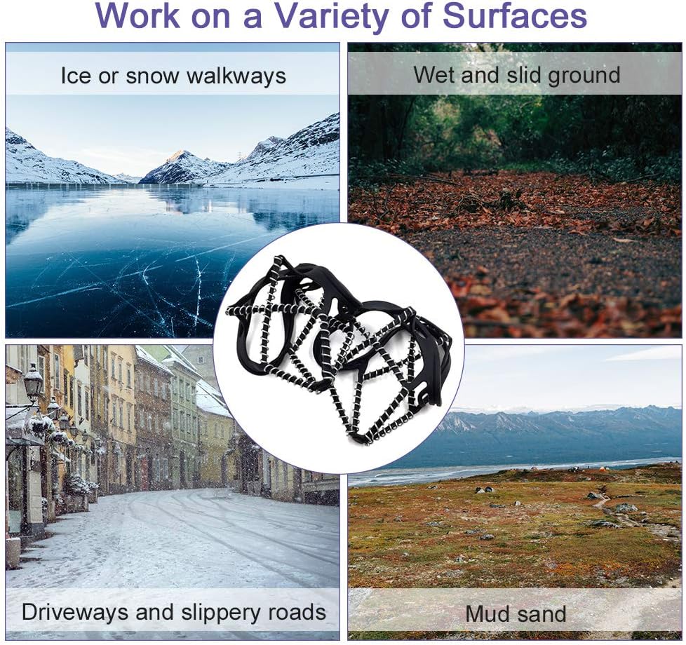 【مضادة للانزلاق وآمنة للاستخدام في الهواء الطلق】توفر 360 درجة من الجر على الأسطح الباردة لتحقيق ثبات في جميع الاتجاهات. ويمكنه توفير قوة جر ممتازة على مجموعة متنوعة من التضاريس أو أسوأ الظروف الأخرى، مما يبقيك آمنًا وخاليًا من الإصابات.