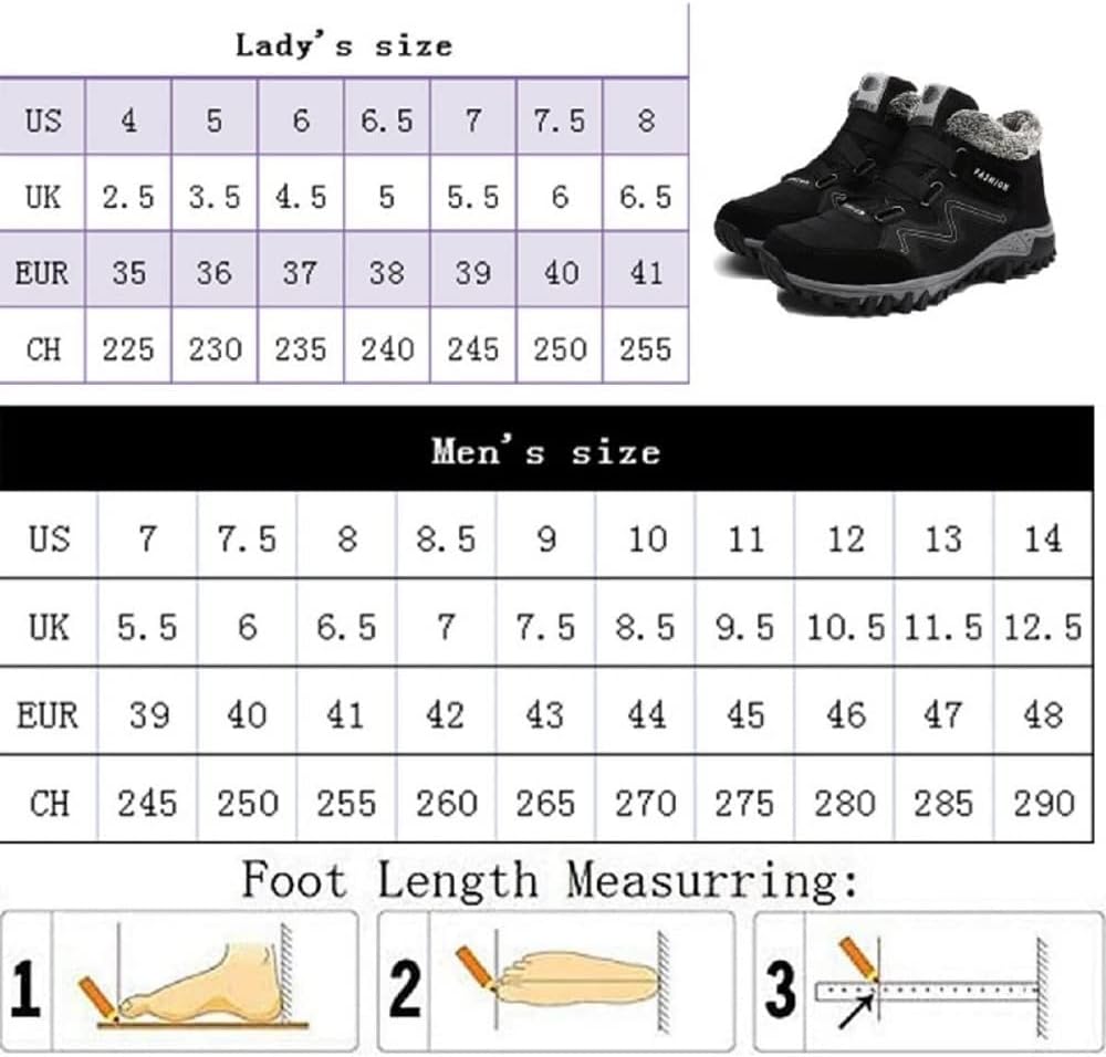 【Upper Material】 Winter ankle boot upper in suede. Soft, light and comfortable, it keeps your feet as comfortable as cotton. In addition, snow can be easily prevented from entering the shoe.