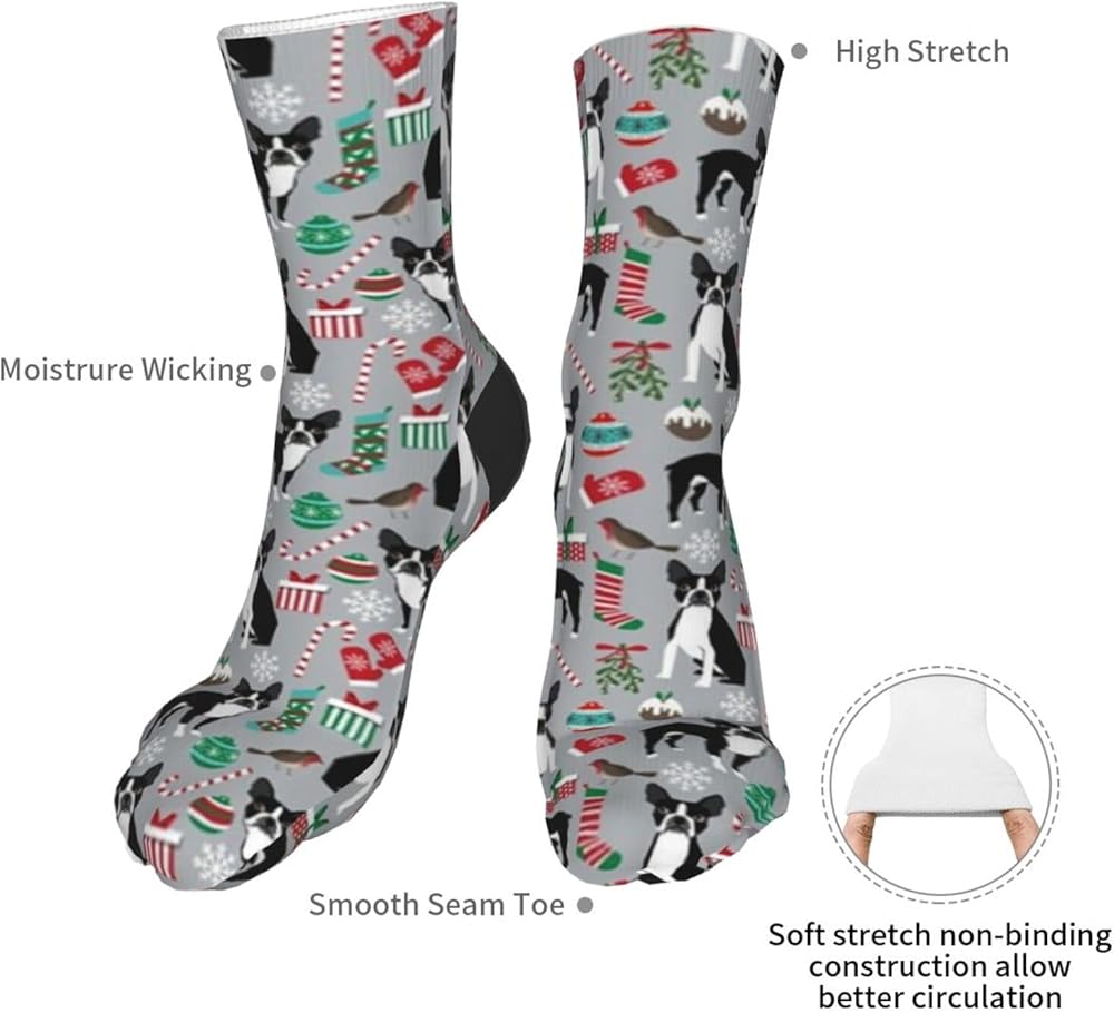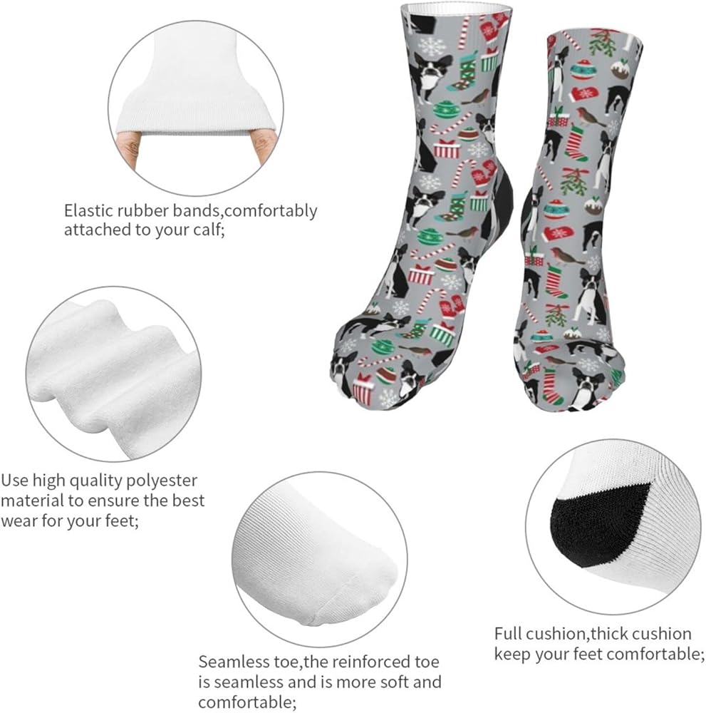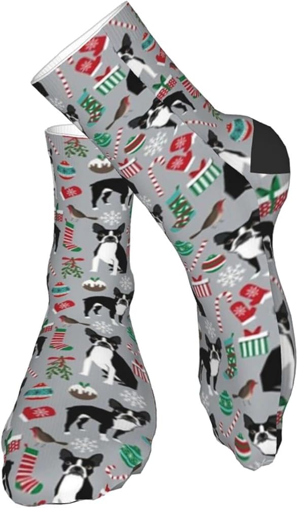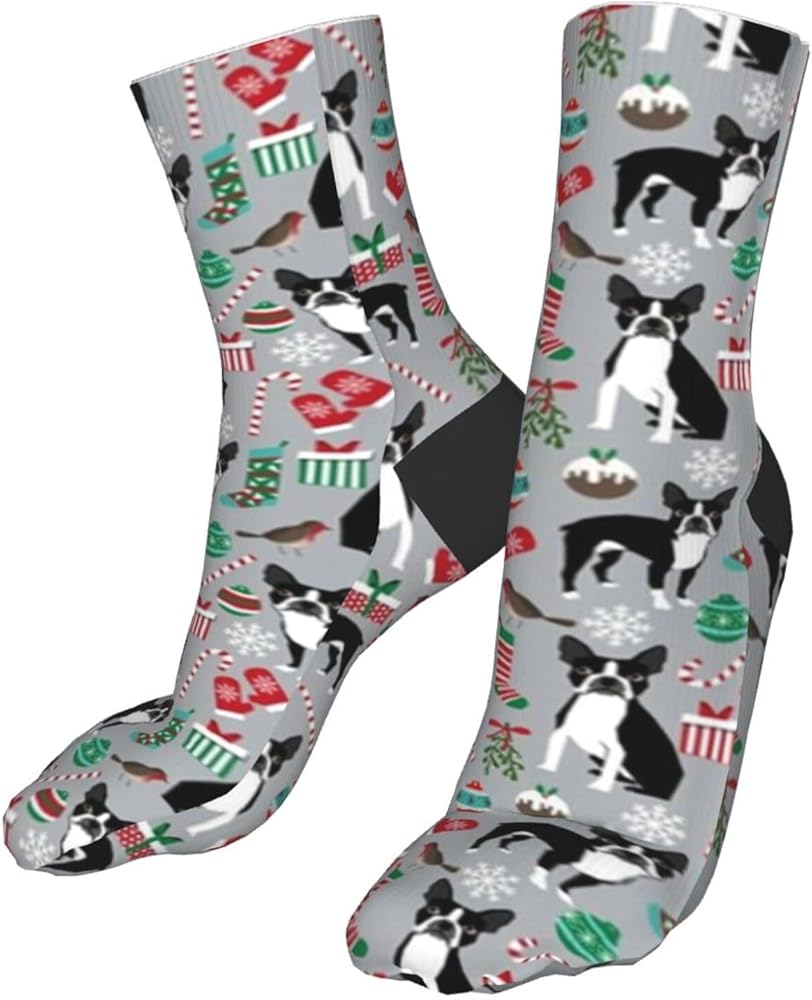 جوارب AOTOSE Boston Terrier لعيد الميلاد اللطيفة وعطلات الكلاب بتصميم رياضي للكاحل للرجال والنساء من القطن باللون الأسود (11028)