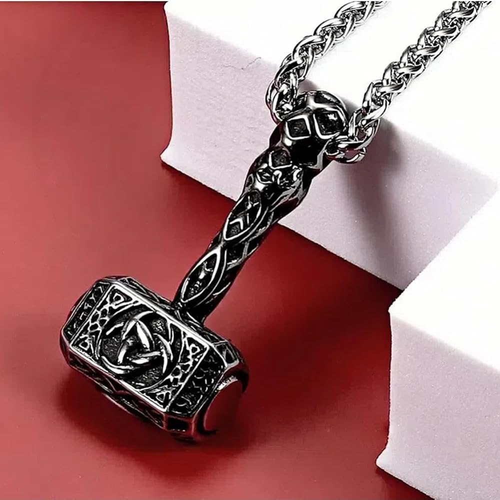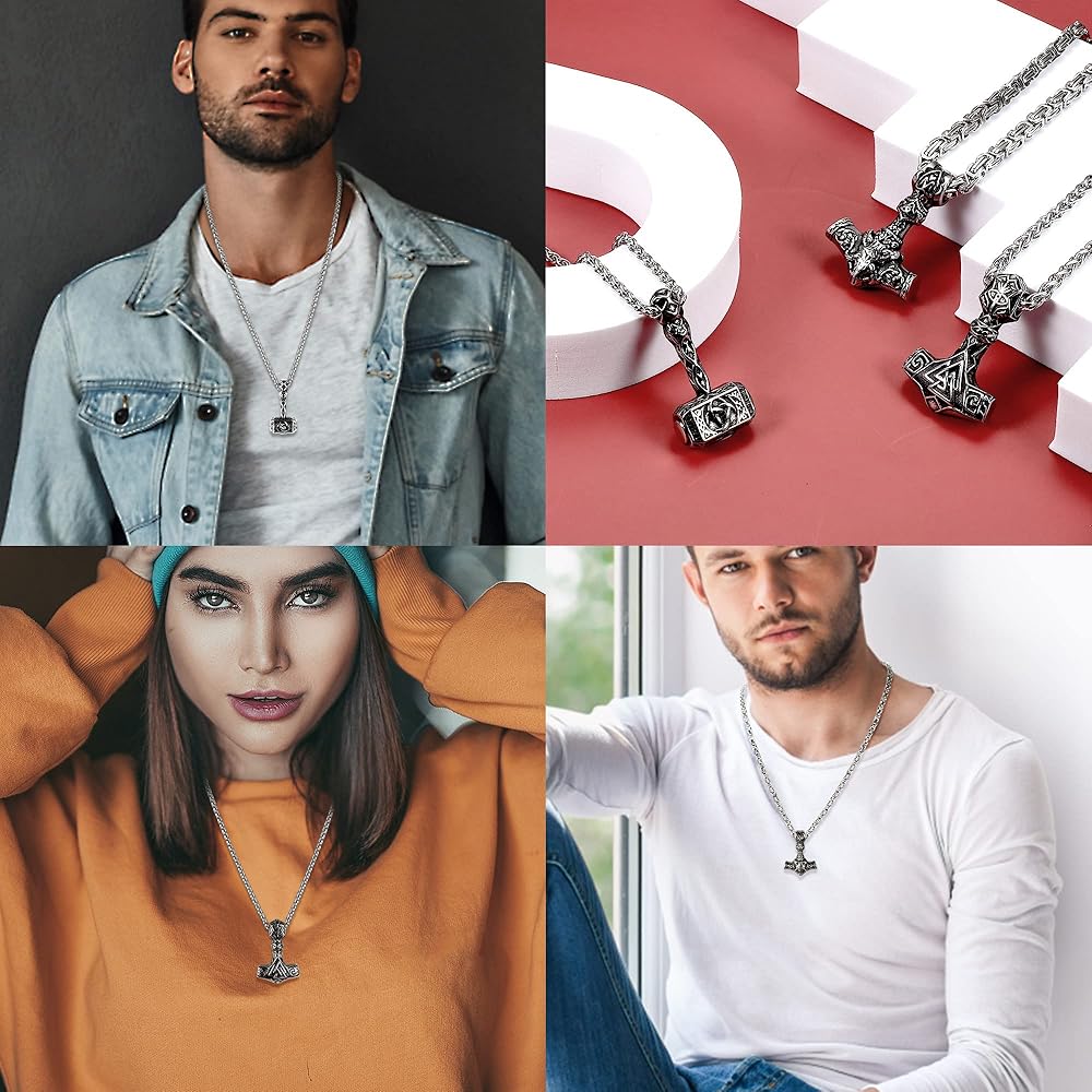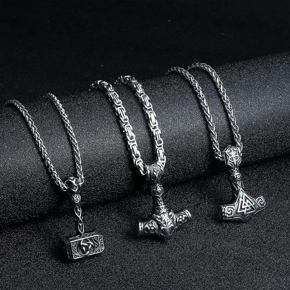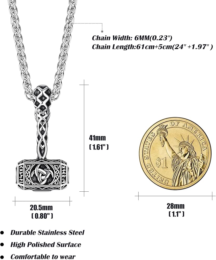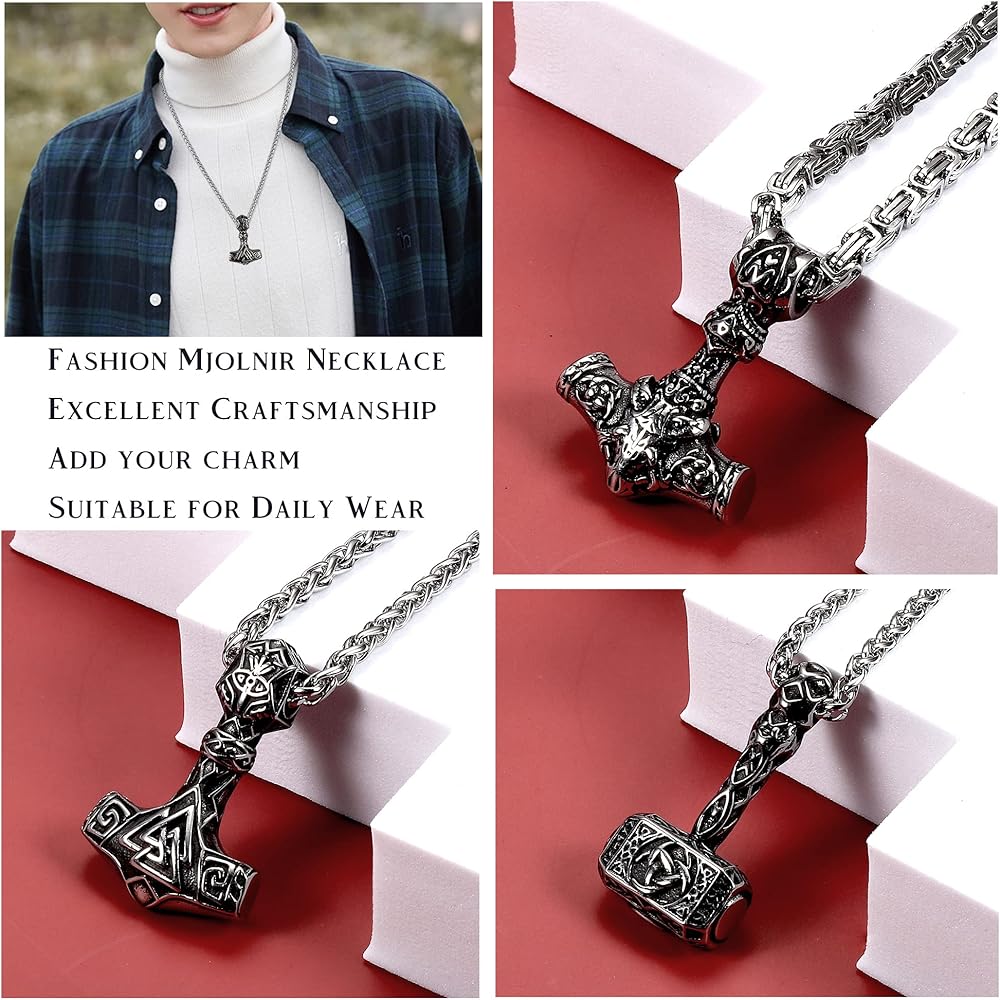 RnBLM مجوهرات Mjolnir قلادة قلادة للرجال الفولاذ المقاوم للصدأ للنساء فايكنغ المطرقة قلادة خمر ثور Miljonir قلادة 24"