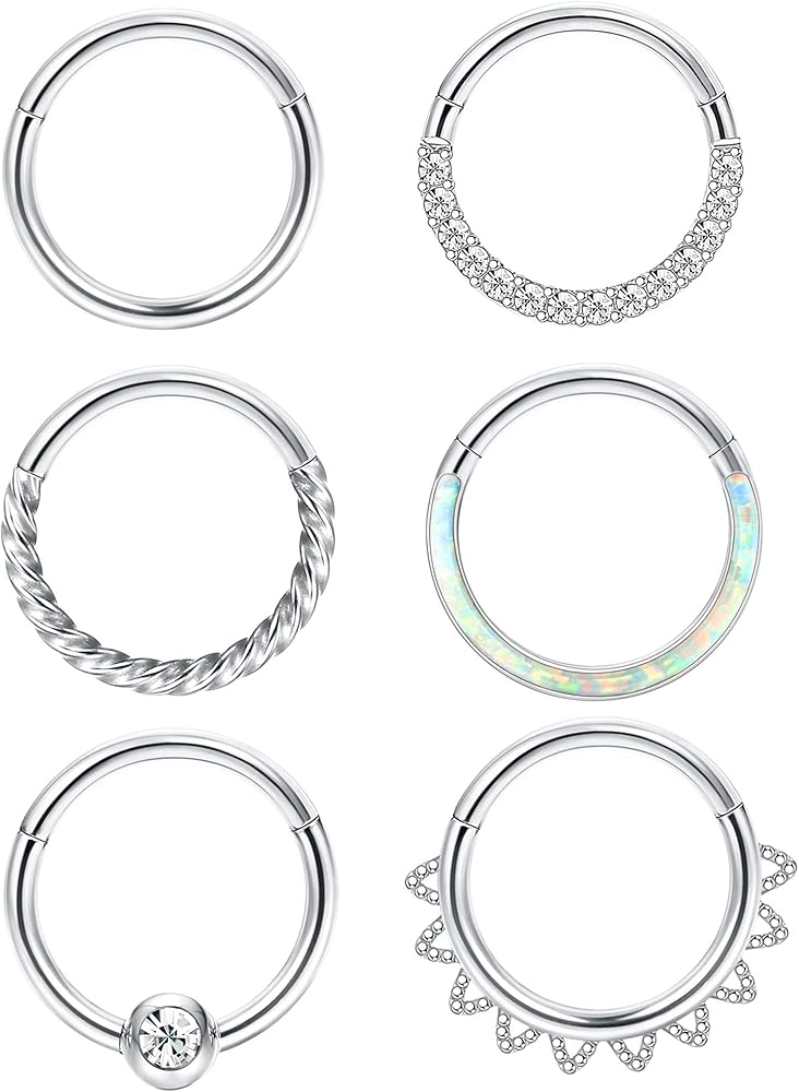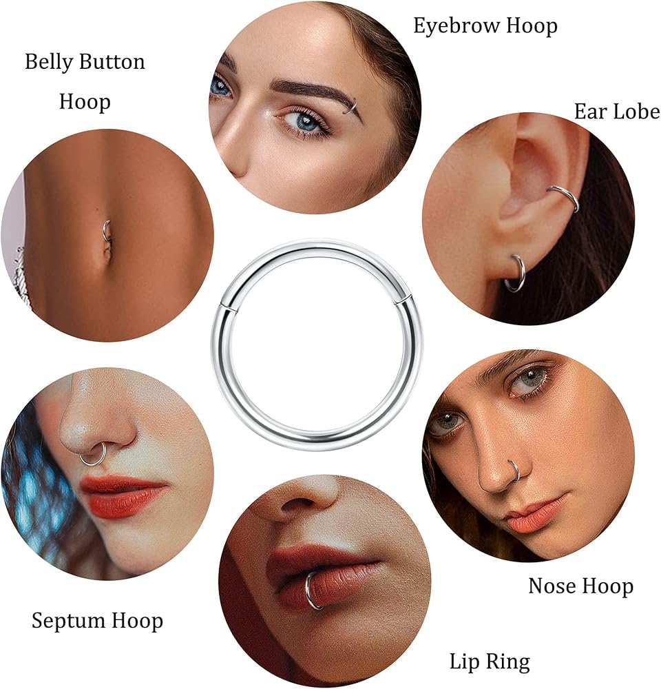 💎متعددة الاستخدامات - يمكن استخدام حلقات ثقب الجسم الأنيقة هذه كحلقات للأنف وحلقات لحاجز الأنف وأقراط حلقية للغضروف ومجوهرات ثقب محارة الأذن وحلقات حلقية حلزونية وحلقات للشفاه وما إلى ذلك. 6 أنماط مختلفة لتختار من بينها، تلبي احتياجاتك المختلفة.