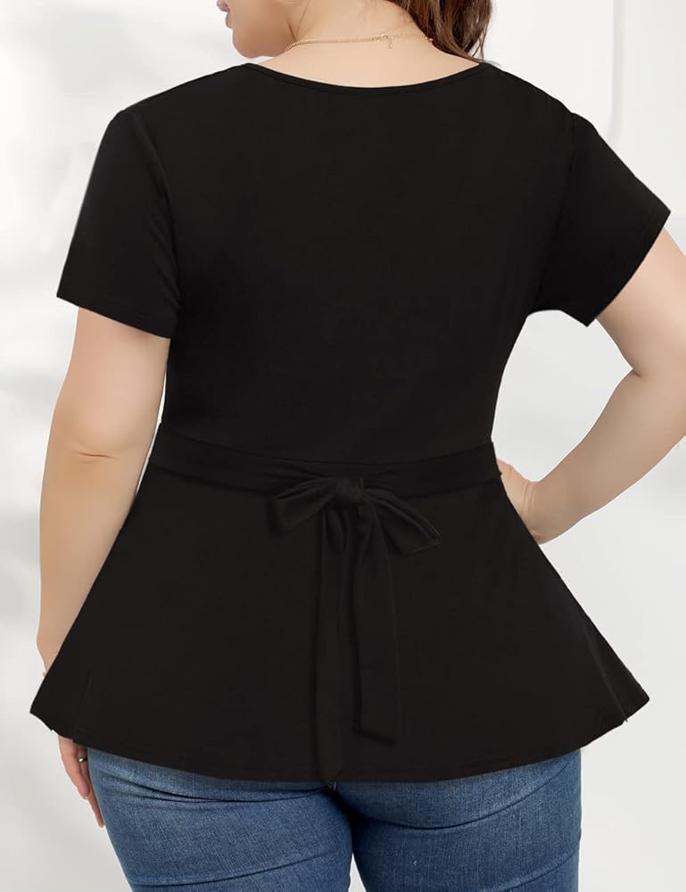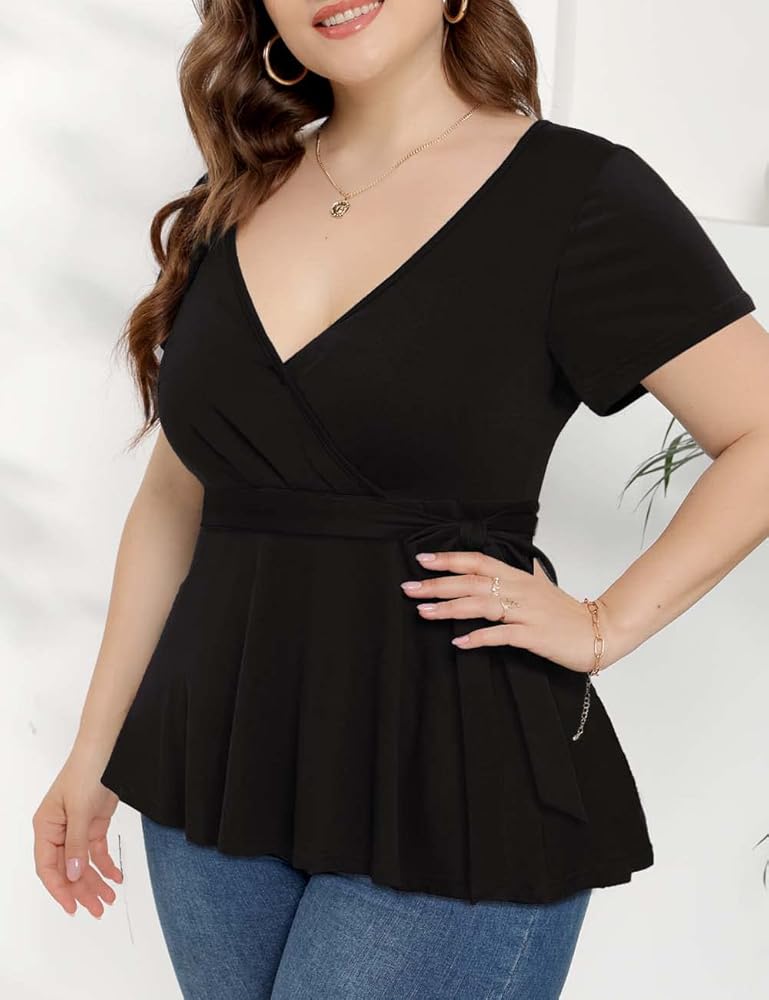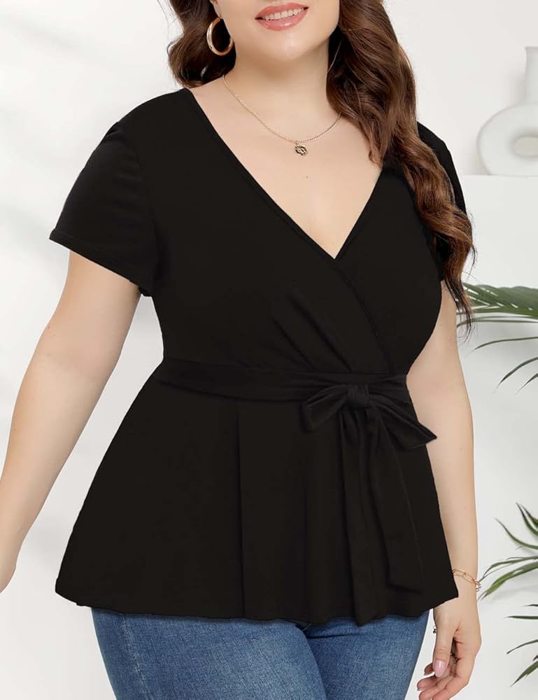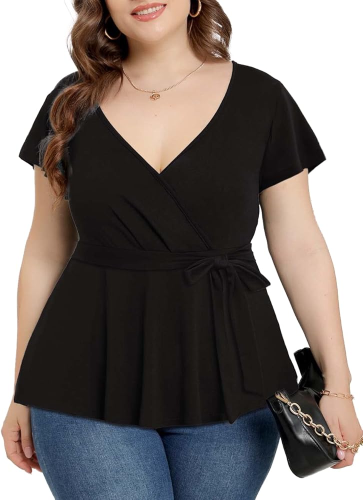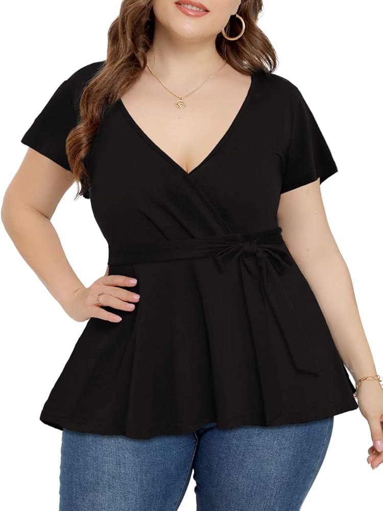 التصميم: أكمام قصيرة، رقبة على شكل حرف V، خصر ملفوف، طيات طفيفة على الأمام والخلف، خصر علوي للسيدات برقبة على شكل حرف V وتفاصيل مطوية لتوفر لك مظهرًا نحيفًا. تصميم فضفاض، تصميم حاشية متأرجحة. حزام طويل يسمح بلفه، مربوطة في الخلف أو الجانب أو الأمام، مما يمنحك شكل خصر جميل. قمصان كاجوال للعمل للنساء، قمصان ملفوفة بمقاسات كبيرة للنساء.