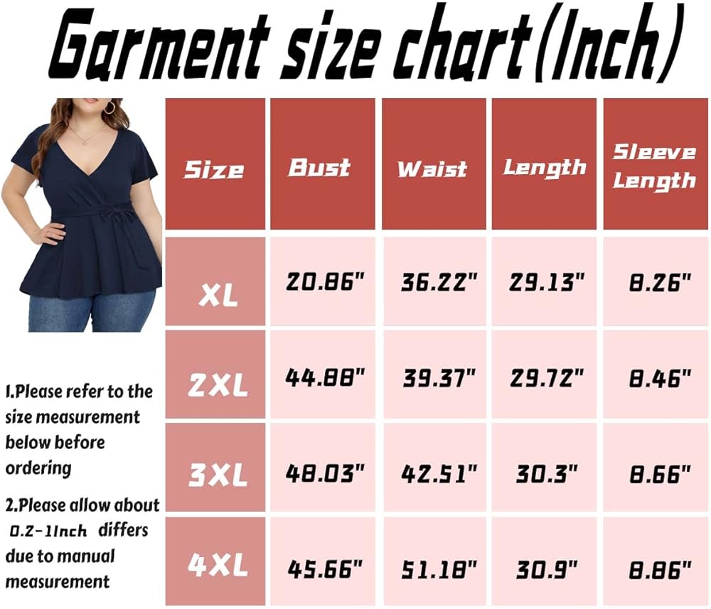 جدول المقاسات: مقاس XL: الصدر-20.86 بوصة، الخصر: 36.22 بوصة، الطول-29.13 بوصة. طول الكم: 8.26 بوصة، مقاس 2XL: الصدر-44.88 بوصة، الخصر: 39.37 بوصة، الطول-29.72 بوصة. طول الكم: 8.46 بوصة .المقاس 3XL: الصدر-48.03 بوصة، الخصر: 42.51 بوصة، الطول-30.3 بوصة. طول الكم: 8.66 بوصة. الخصر: 45.66 بوصة، مقاس 4XL: الصدر-51.18 بوصة، الطول-30.9 بوصة. طول الكم: 8.86 بوصة. :يرجى الرجوع إلى قياسات المقاسات الخاصة بنا للتأكد من مقاسك قبل الشراء والسماح باختلاف قدره 0.2 بوصة إلى 1 بوصة بسبب القياس اليدوي.