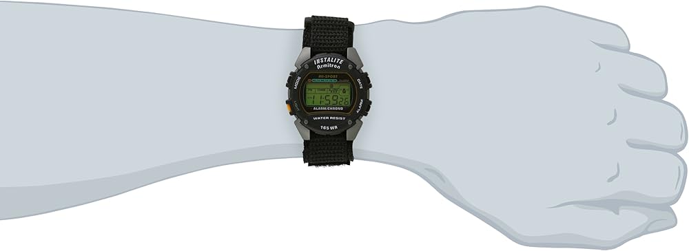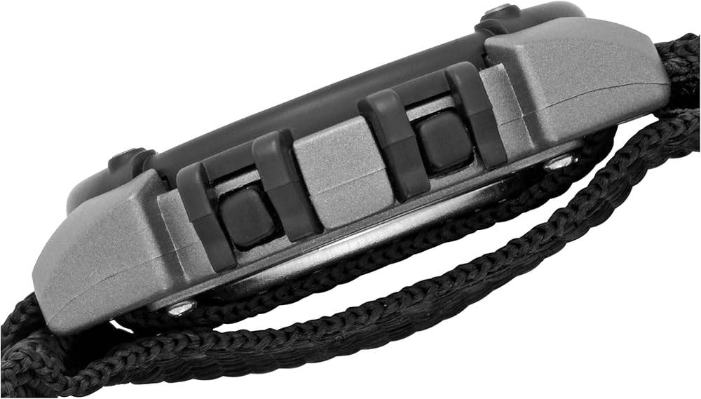 - ساعة رياضية رقمية بهيكل رمادي وأسود تتميز بمنبه ووظائف كرونوغراف وإضاءة