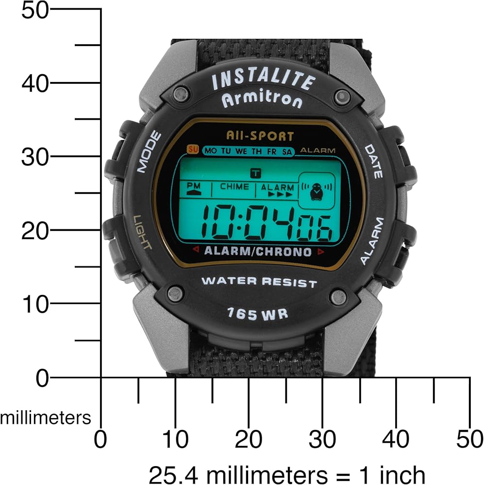 ارمترون ساعة رياضية للرجال 406623 دائرية بلون رمادي واسود مع سوار من النايلون, أسود, ستراب