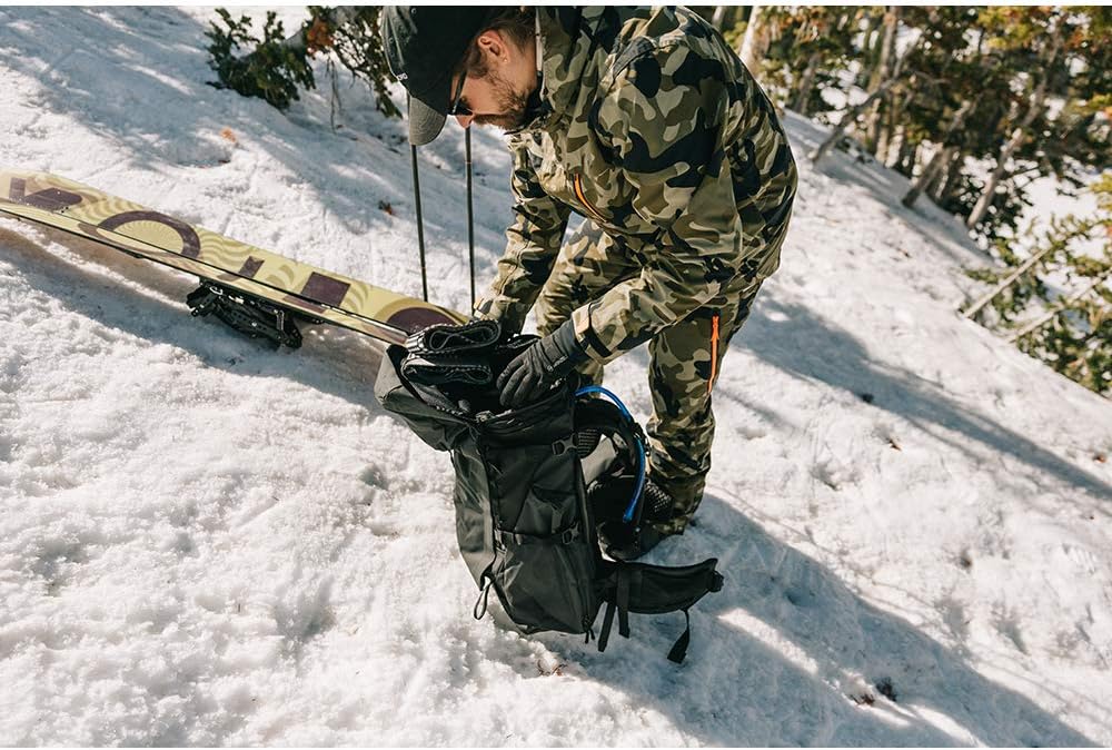 أحزمة حمل التزلج القابلة للتخزين وحلقات فأس الجليد. إسفنج مسامي ولوحة خلفية شبكية هوائية وأشرطة وحزام.