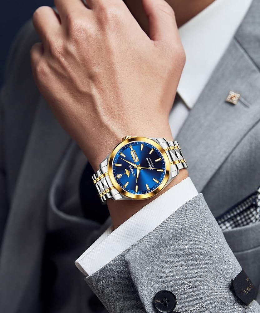 ⌚ ساعة رسمية فاخرة للرجال: عقارب وأقلام مضيئة عالية الوضوح، مقاومة للماء حتى عمق 164 قدمًا (50 مترًا)، تسمح بارتدائها أثناء السباحة في حمام السباحة في المياه الضحلة (باستثناء الساونا والغوص). يوفر أفضل أداء للساعات الرجالية.