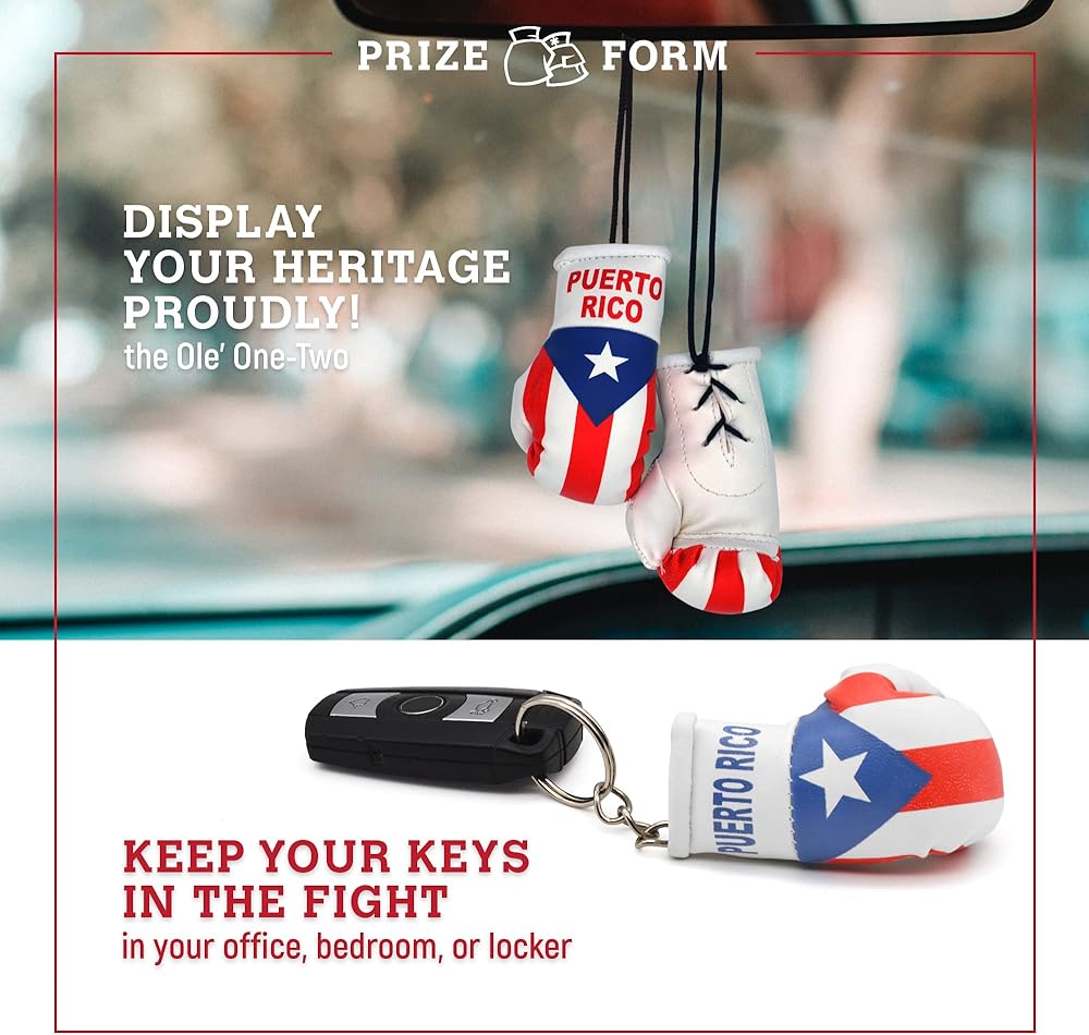 اعرض تراثك! يمكن استخدام قفازات الملاكمة المصغرة هذه كإكسسوارات مرآة الرؤية الخلفية في السيارة وعلى سلسلة مفاتيحك.