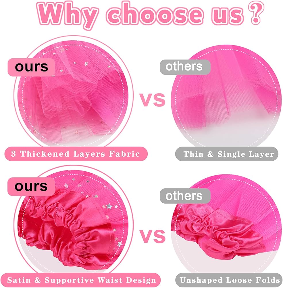 ※【المزيد من النسيج والفلوفير】 نظرًا لأن العديد من التنانير الأخرى رفيعة جدًا، فإن التنورات القصيرة الخاصة بنا هي ما تبحث عنه: 3 طبقات سميكة من البوليستر والتول، المزيد من القماش، أكثر نعومة، أفضل في الشكل ومزينة بالنجوم. الخصر هو شريط مطاطي ناعم مغطى بالساتان الأنيق، لن يؤذي بشرة الأطفال.