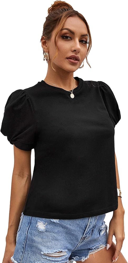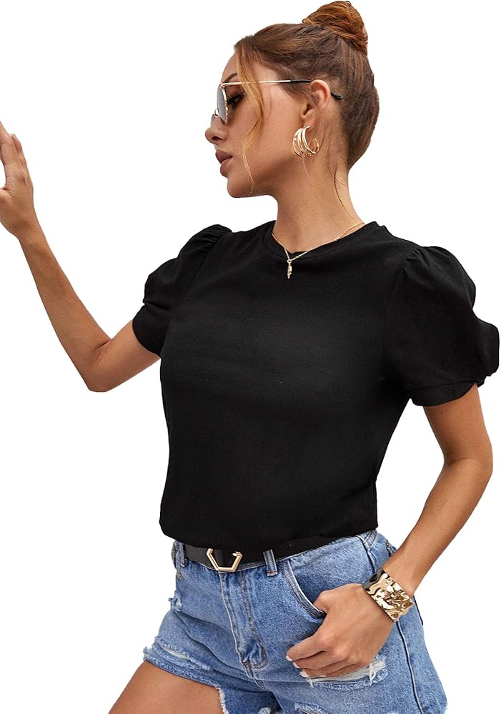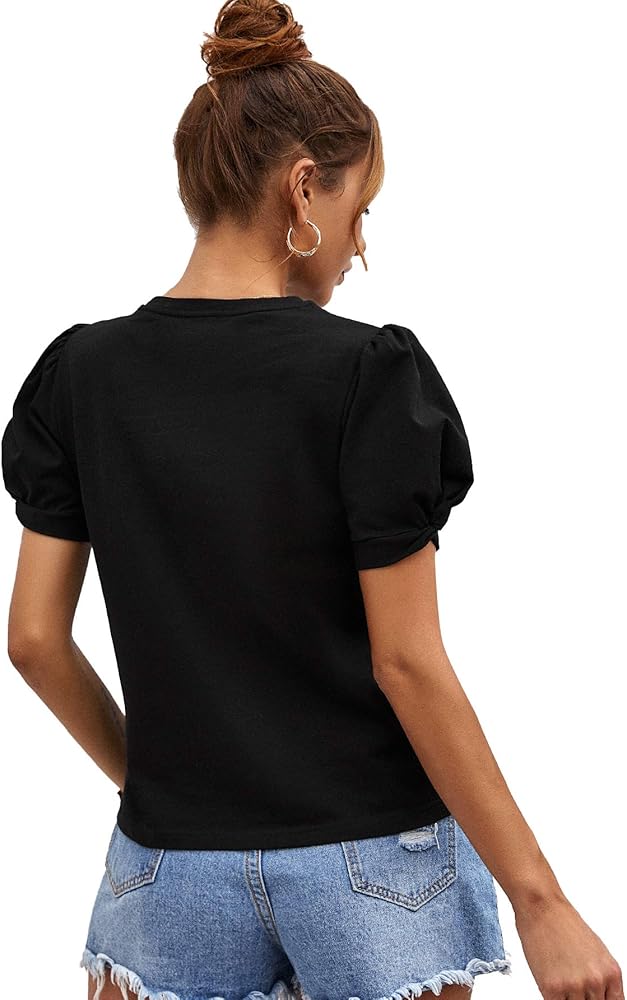 - يتميز هذا التيشيرت بأكمام منتفخة ورقبة دائرية