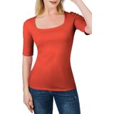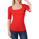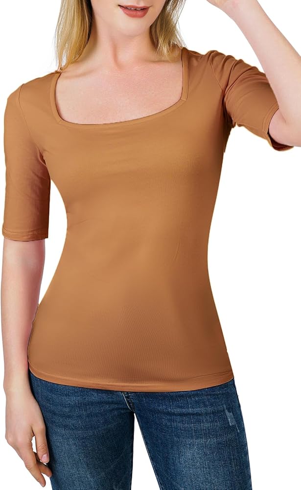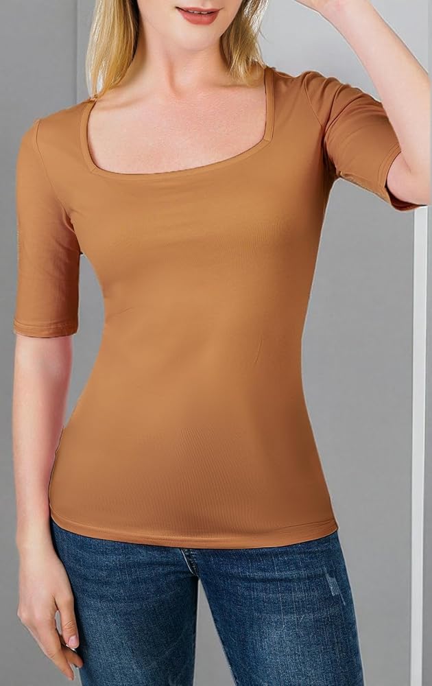 - تيشيرت سادة أساسي بنصف كم وياقة مربعة أنيقة