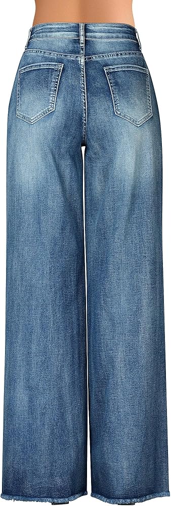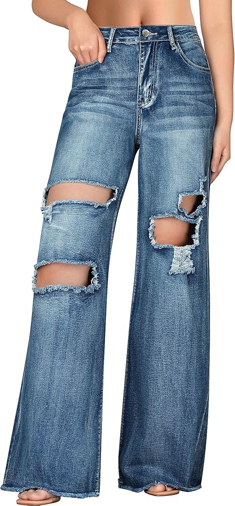• أنيق ومريح: يتميز بنطال الجينز المطاطي عالي الخصر لدينا بمقاس عصري وواسع الساق ومصنوع من قماش عالي الجودة وقابل للتمدد يوفر الأناقة والراحة.