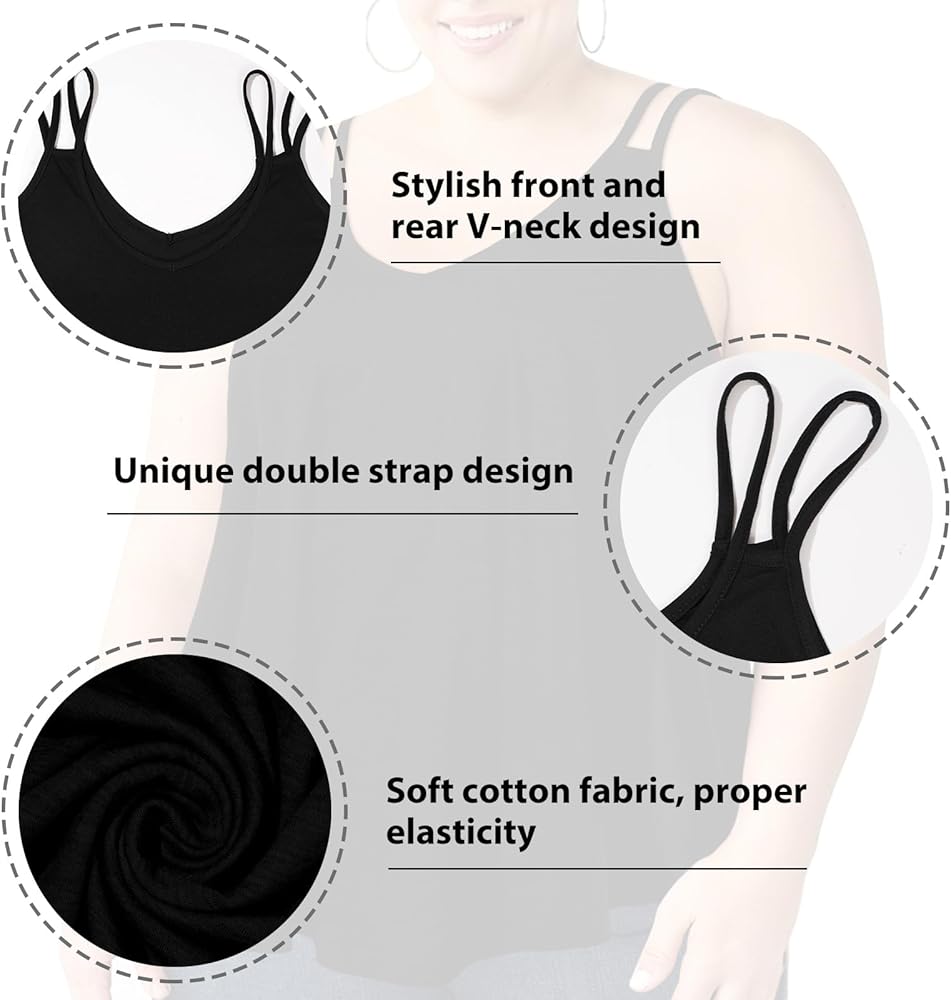 [المميزات] تتميز هذه القمصان الداخلية النسائية بتصميم رقبة على شكل حرف V أمامي وخلفي، وهي أنيقة ويمكن أن تضفي لمسة جمالية على منحنياتك العامة. تصميم حزام سباغيتي مزدوج، لن يقلل الضغط على الكتفين فحسب، بل سيضيف أيضًا الكثير من اللمسات اللطيفة لمظهرك الأنيق. تنثني الحاشية الفضفاضة المتدفقة بعيدًا عن الجسم لتوفير الراحة والملاءمة المريحة، وتجعلك تشعر بالراحة والروعة حقًا، ولن يخرج النمط الكلاسيكي والأساسي أبدًا عن الموضة.