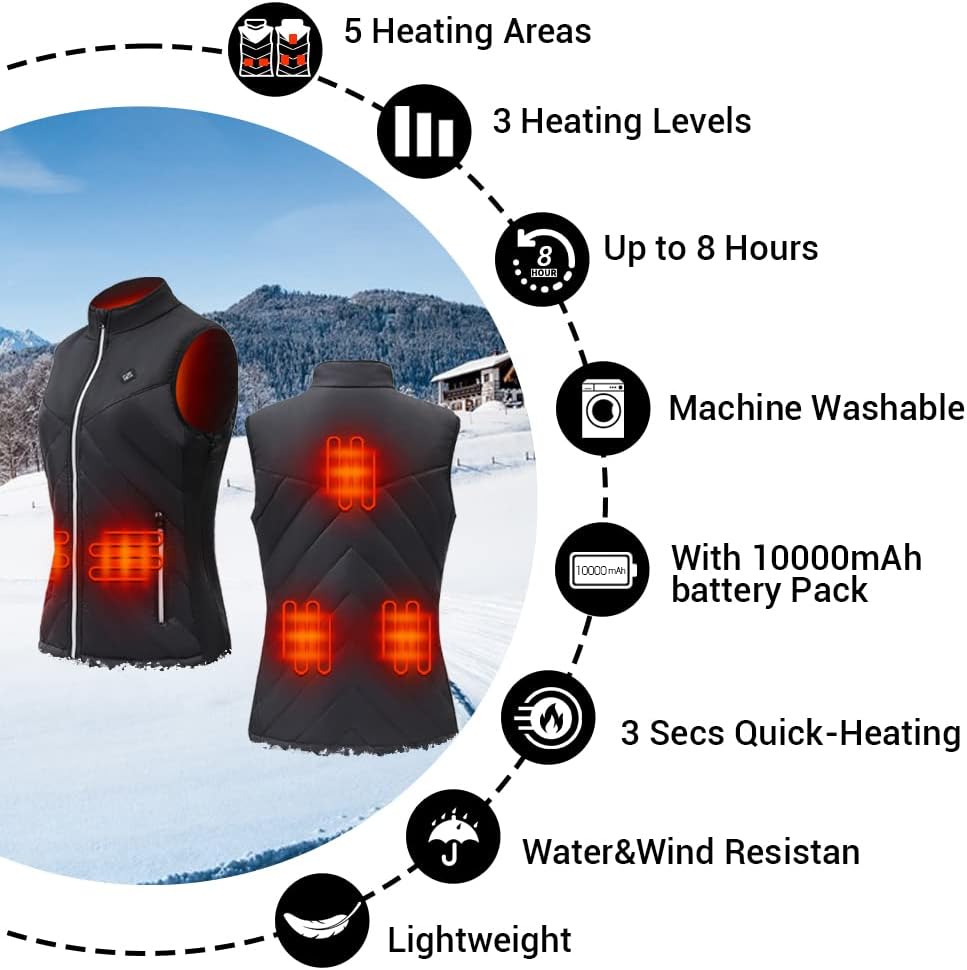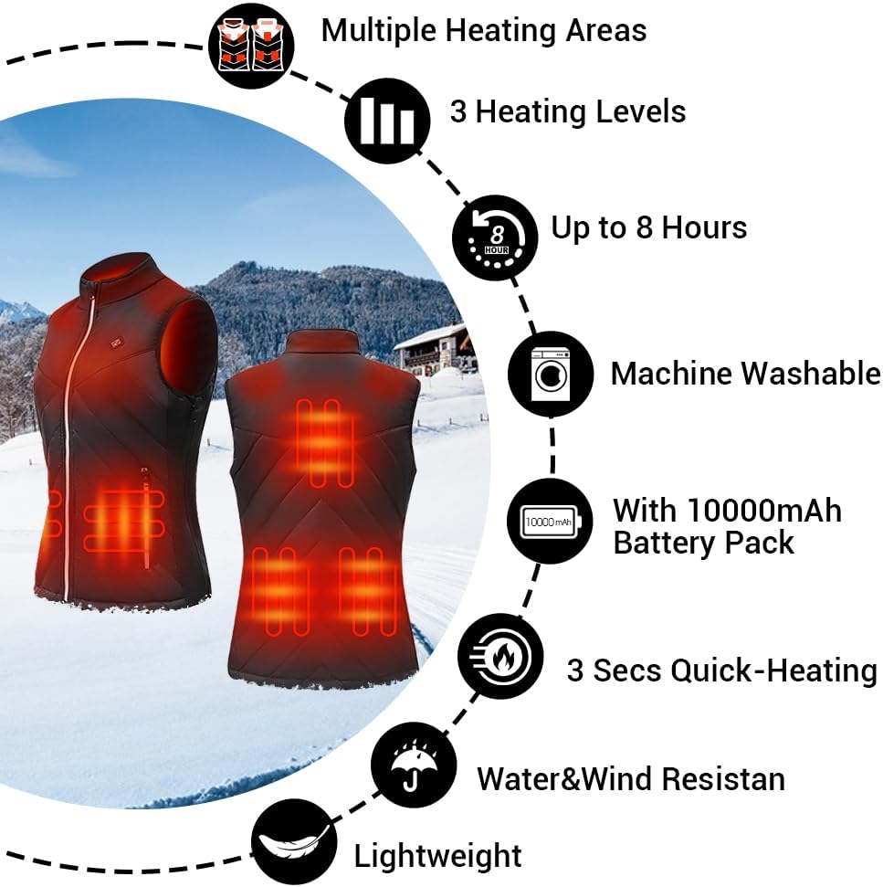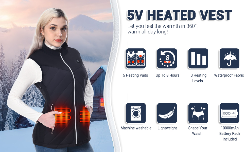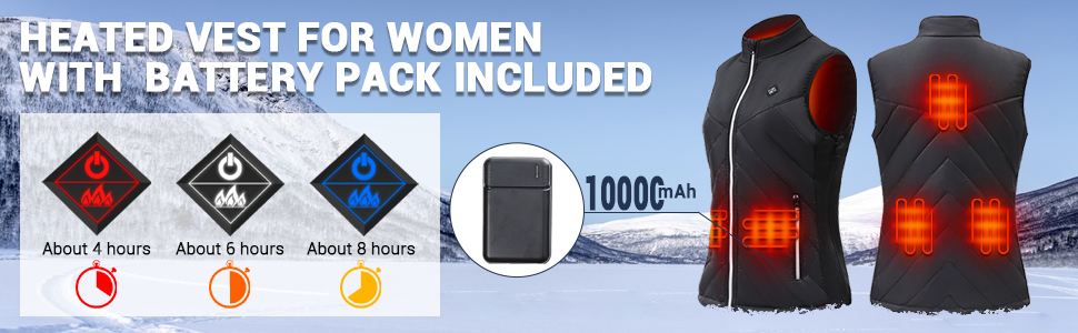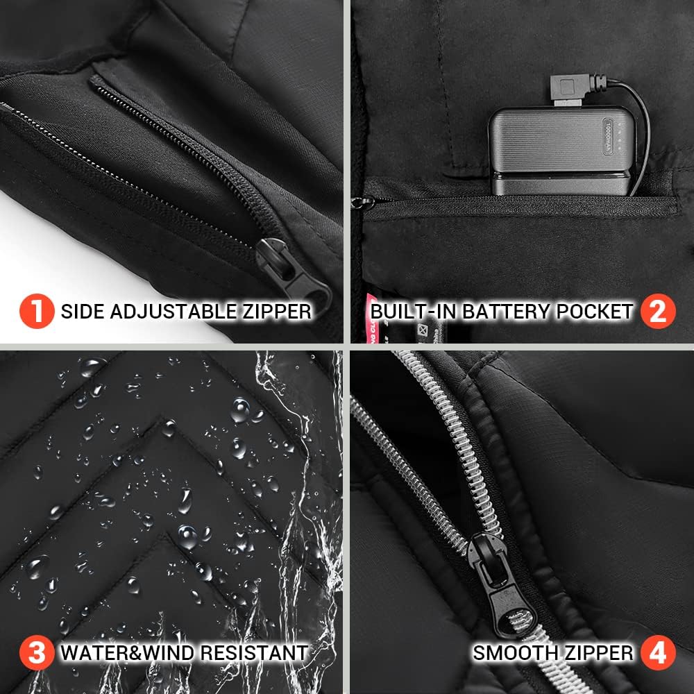 • دفء يدوم طويلاً: السترة النسائية الدافئة مجهزة بجيب بطارية مدمج وبطارية 5 فولت 10000 مللي أمبير في الساعة للتسخين السريع والدفء طويل الأمد، يمكن لبنك الطاقة 10000 مللي أمبير في الساعة توفير ما يصل إلى 8 ساعات من الدفء (أدنى درجة حرارة)، ويمكن أيضًا استخدام البطارية المحمولة كمصدر طاقة لهاتفك أو أي معدات أخرى.