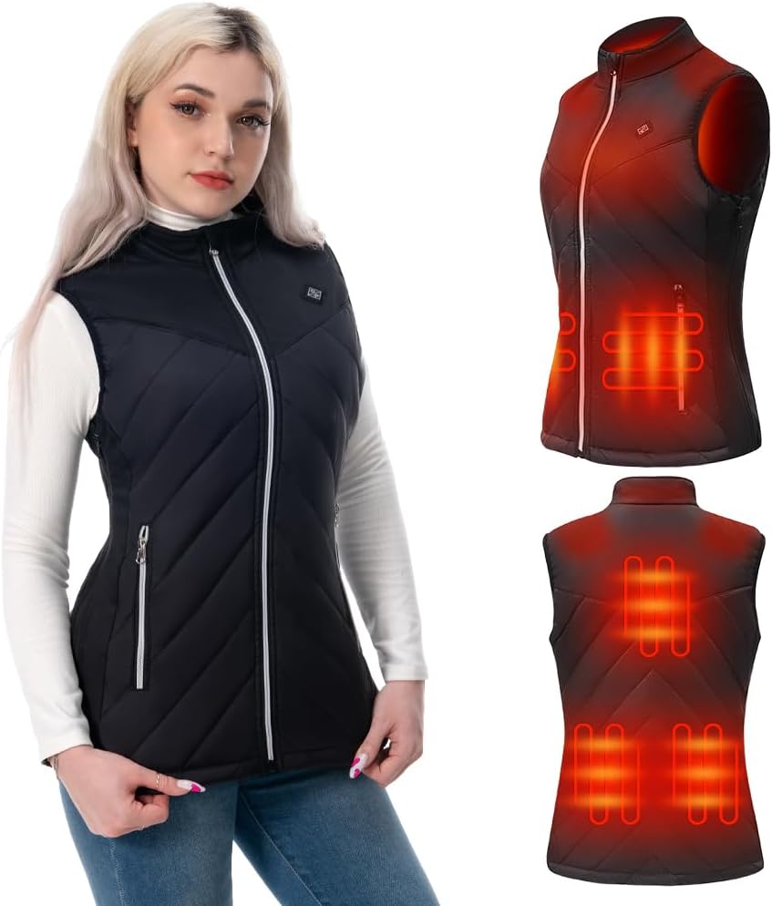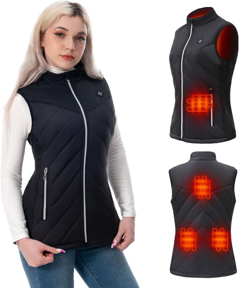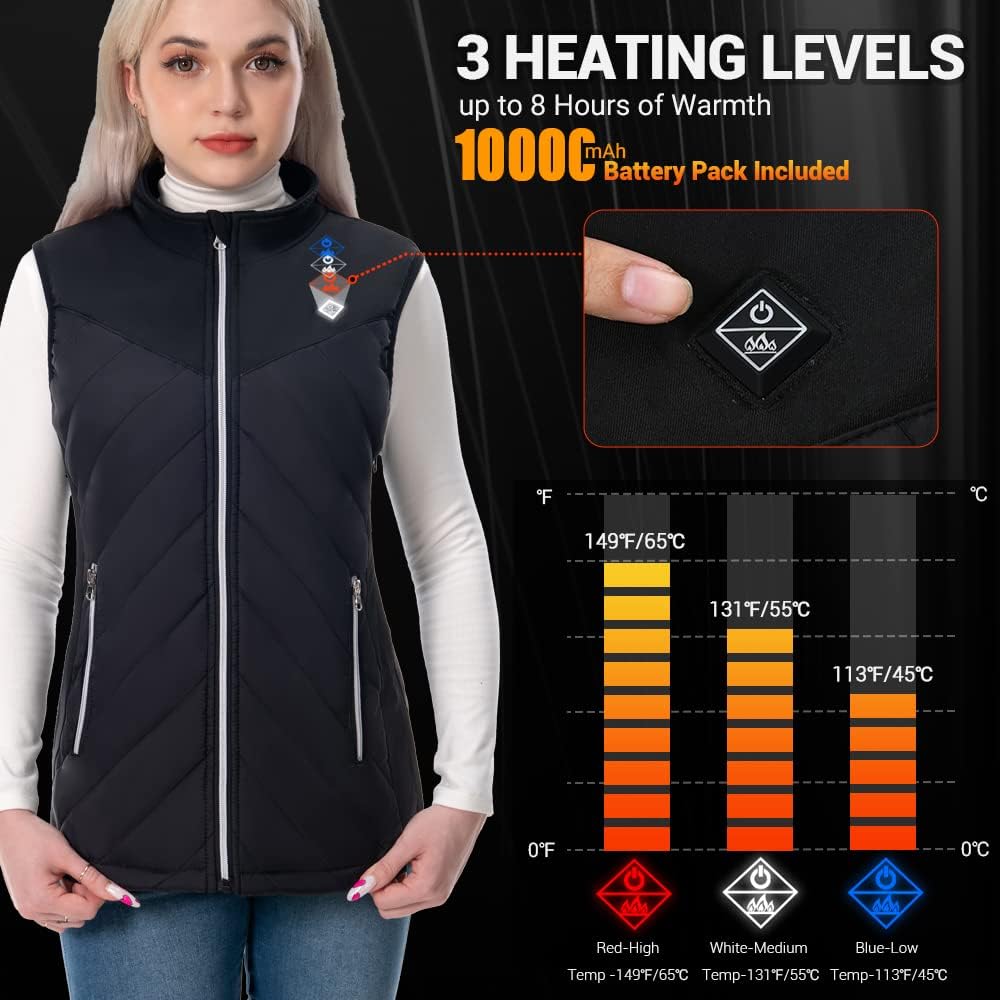 • سترة صحية للنساء: تتميز السترة المُدفأة للنساء بـ 5 عناصر تسخين من ألياف الكربون التي تولد الحرارة على كامل منطقة الجسم الأساسية (تحت الجيبين، منتصف الظهر، قسمين من الخصر الخلفي). تساعد السترة التي يتم تسخينها كهربائيًا على إبقاء الجسم دافئًا.