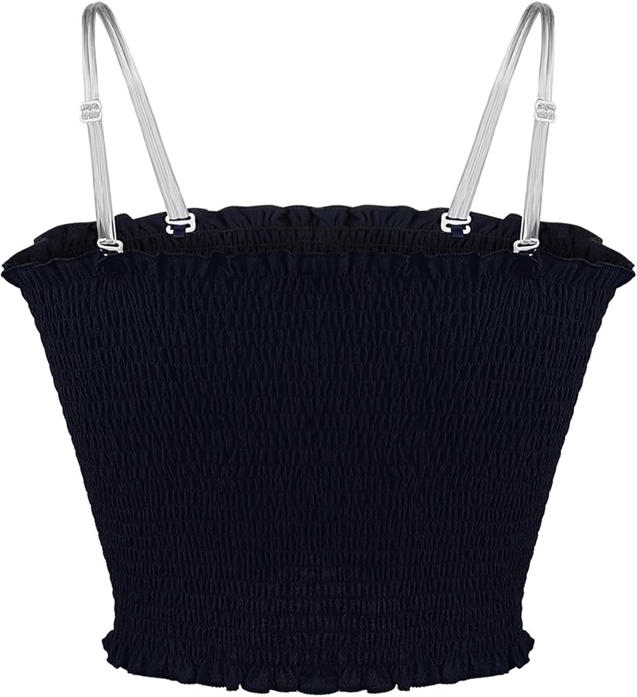 - مع أشرطة سباغيتي شفافة، يمكن فصلها لارتدائها كقميص علوي منزلق أو قميص علوي. تصميم مكشكش ومطاط للغاية