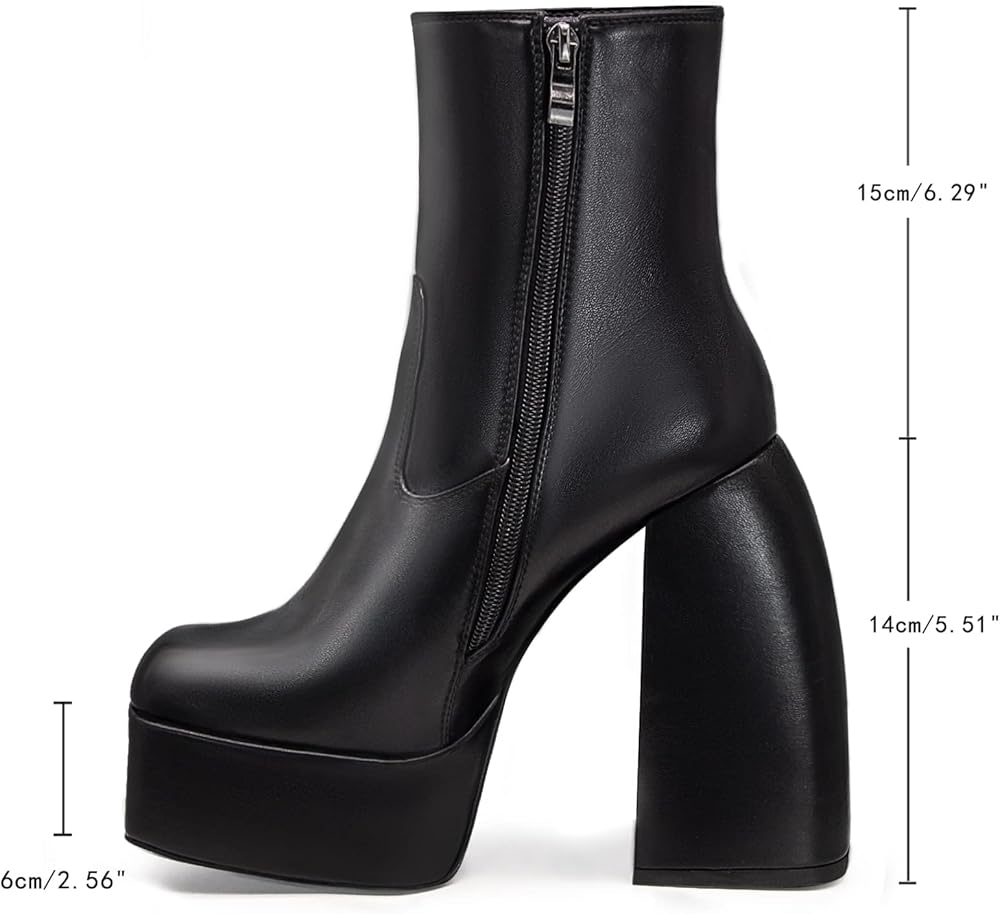 👢القياس: يبلغ كعب الحذاء الكلاسيكي الأسود حوالي 5.5 بوصة (14 سم) والمنصة حوالي 2 بوصة (5 سم)