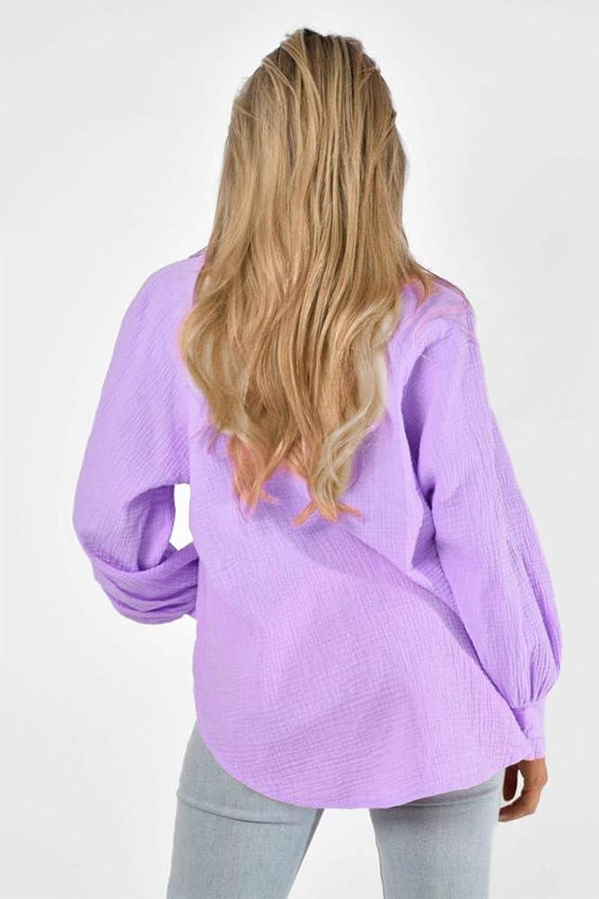 • ►قمصان طويلة الأكمام للسيدات: بلوزة قطنية للسيدات بتصميم كلاسيكي برقبة على شكل حرف V ستعزز رقبتك، مما يجعلك تبدو أكثر رشاقة وسحرًا. المقاس الفضفاض، والياقة المطوية للأسفل، والأصفاد المكشكشة بالأزرار، والأكمام المتدحرجة لأعلى أو لأسفل ستخلق مظهرًا أنيقًا.