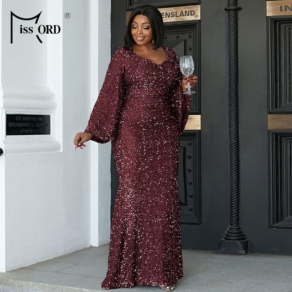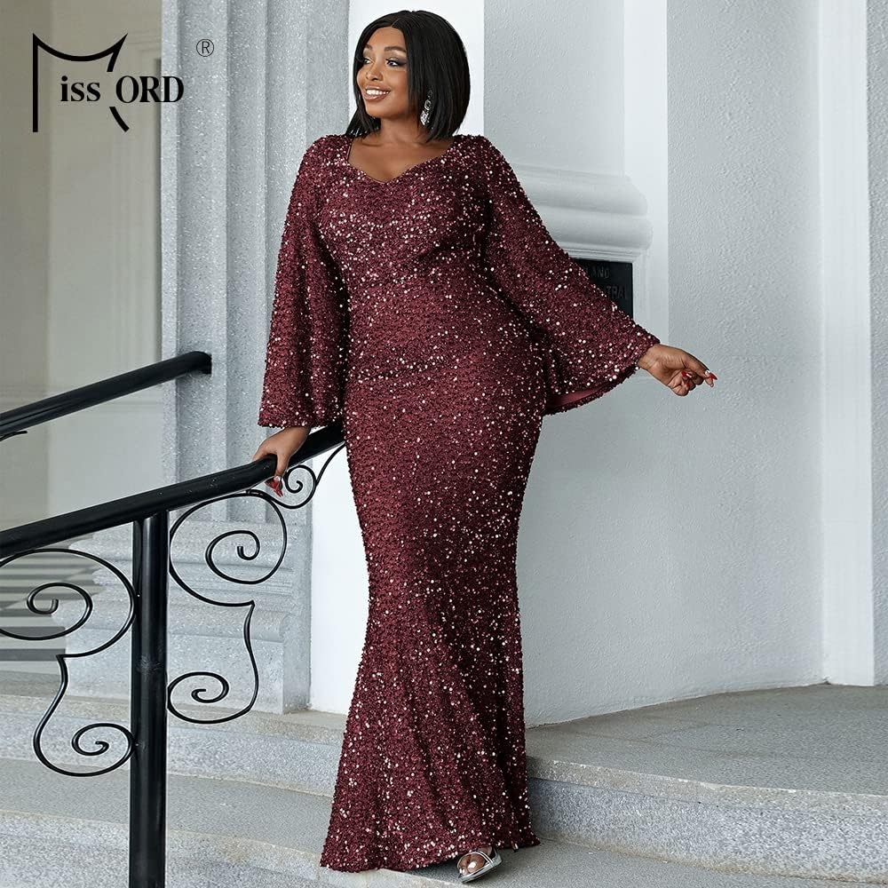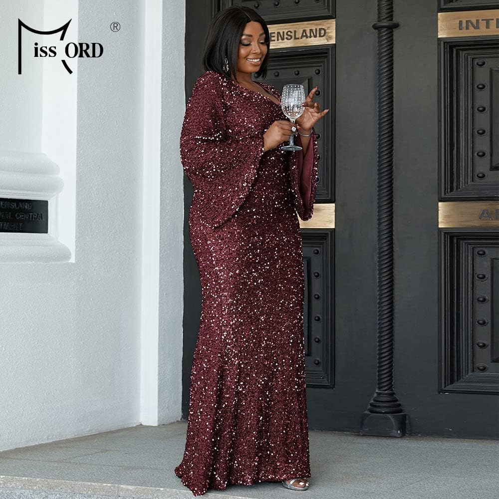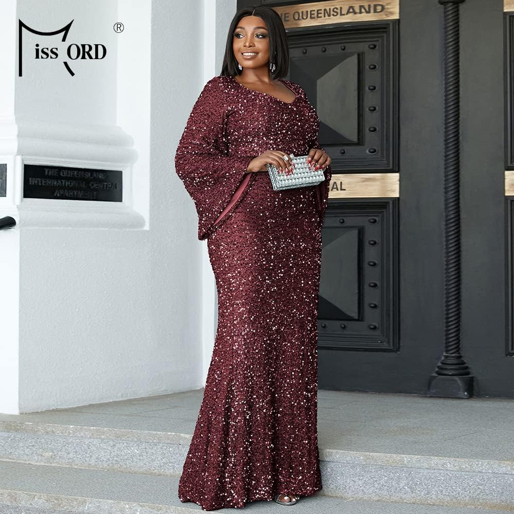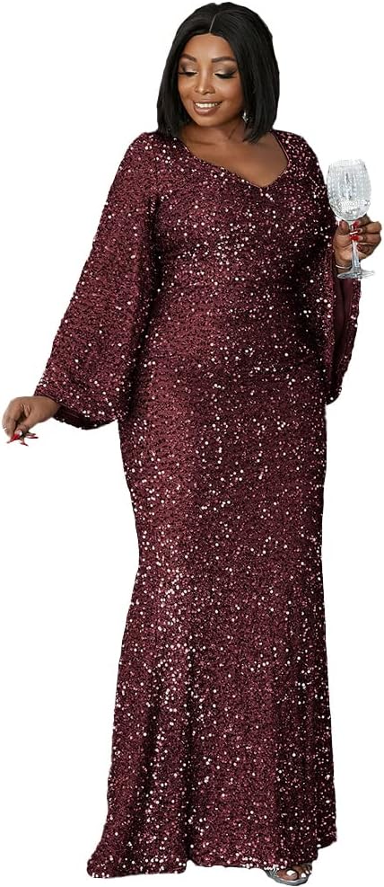 السمات: يتميز هذا الفستان بالترتر ذو المقاس الكبير برقبة على شكل قلب، وأكمام طويلة من الترتر، وخصر عالٍ، وحاشية طويلة بطول الأرض، مع تصميم ملائم عادي. أظهر سحرك وأناقتك.