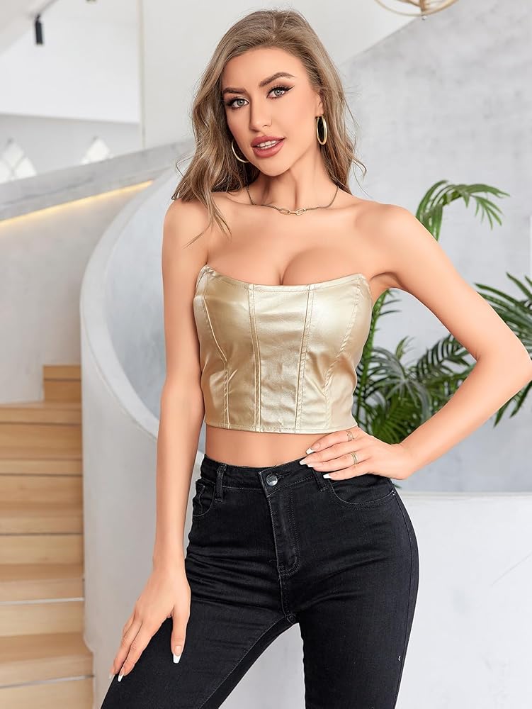 - السمات: قميص قصير، بدون حمالات، بدون أكمام، سحاب خلفي، صلب، مقاس نحيف