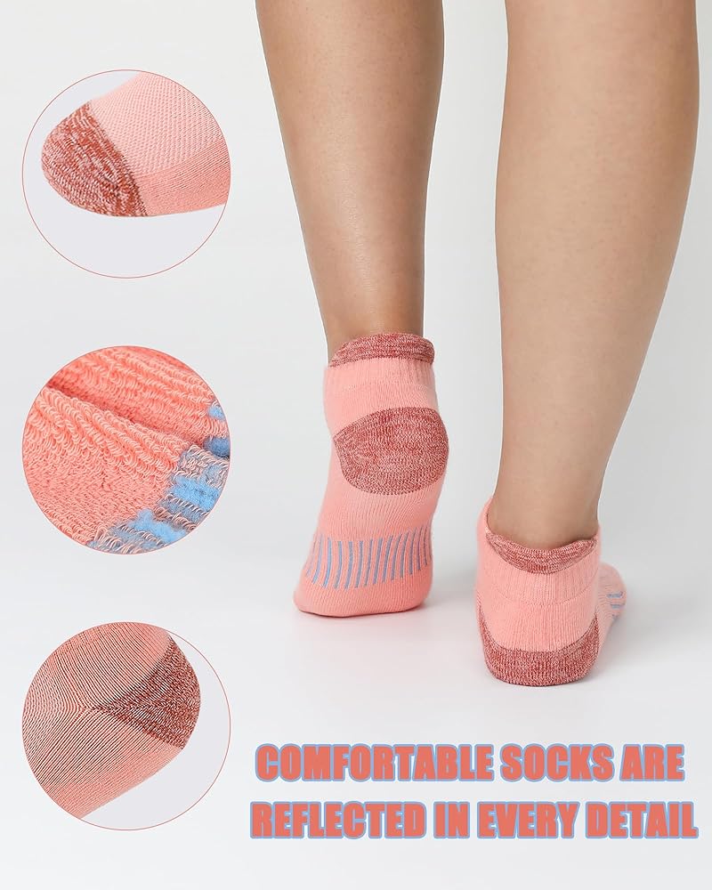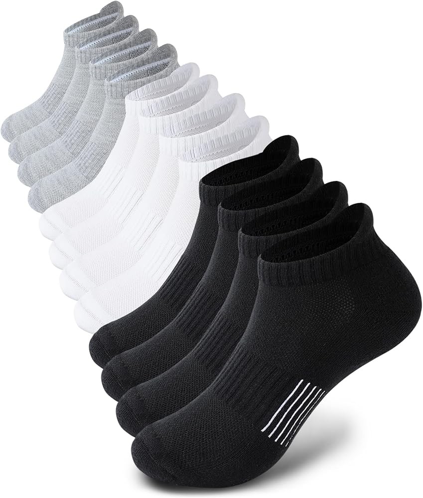 جوارب لا تظهر مسامية: تصميم شبكي للتهوية على مشط القدم يضمن التهوية. رائعة للعديد من الرياضات أو الملابس الكاجوال، مثل الجري، والتمرين، والتنس، وصالة الألعاب الرياضية، والتدريب، والمشي، والرحلات، والجولف، والركض، والنزهات، واللياقة البدنية، إلخ. جوارب عالية الأداء مع تصميم منخفض الكاحل وضغط خفيف يناسب معظم أحذيتك، في حين أنها مرتفعة بما يكفي لحماية كاحلك.