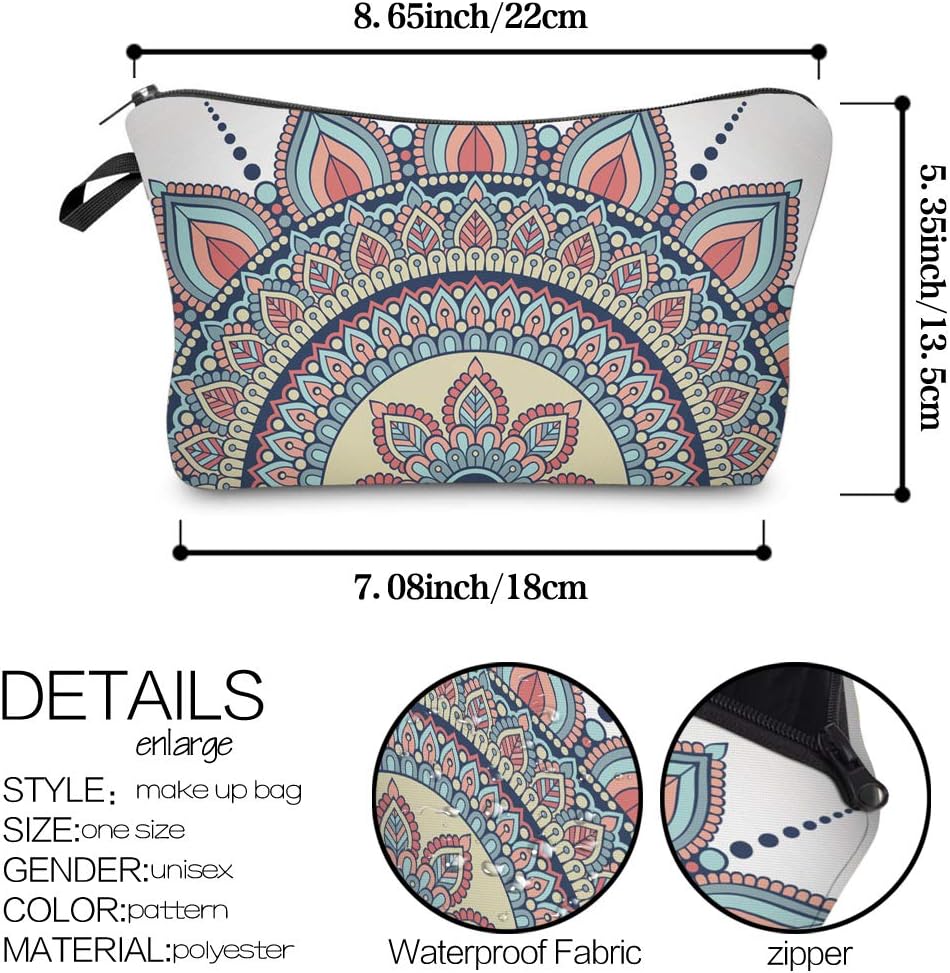 حقيبة مستحضرات التجميل للنساء من Deanfun، حقائب مكياج مقاومة للماء على شكل زهور ماندالا، حقيبة واسعة لأدوات الزينة، هدايا إكسسوارات السفر (50965)