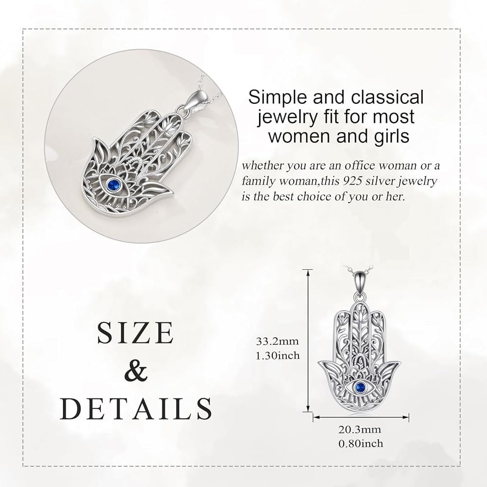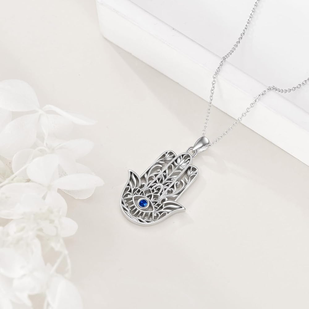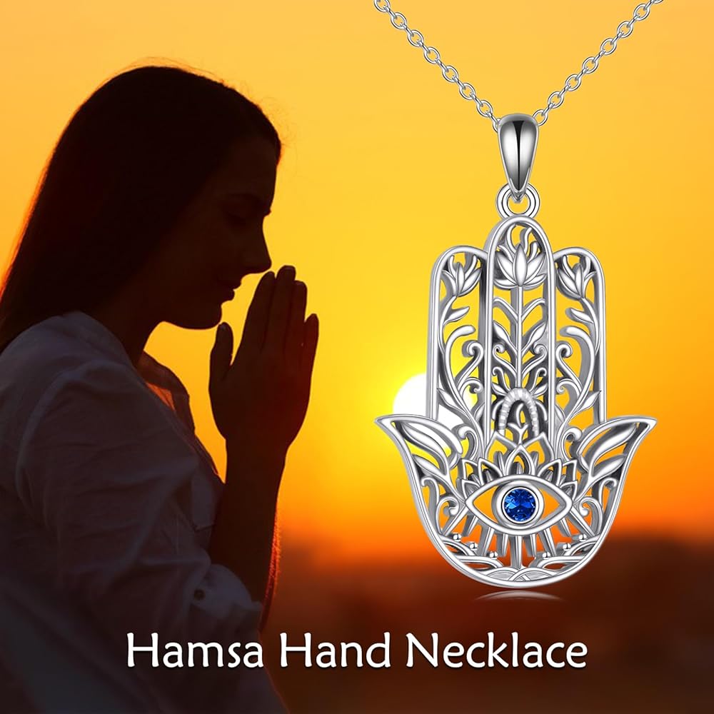 قلادة همسة من الفضة الإسترلينية قلادة عين الشر لوتس همسة قلادة يد لوتس عين الشر مجوهرات للنساء والفتيات