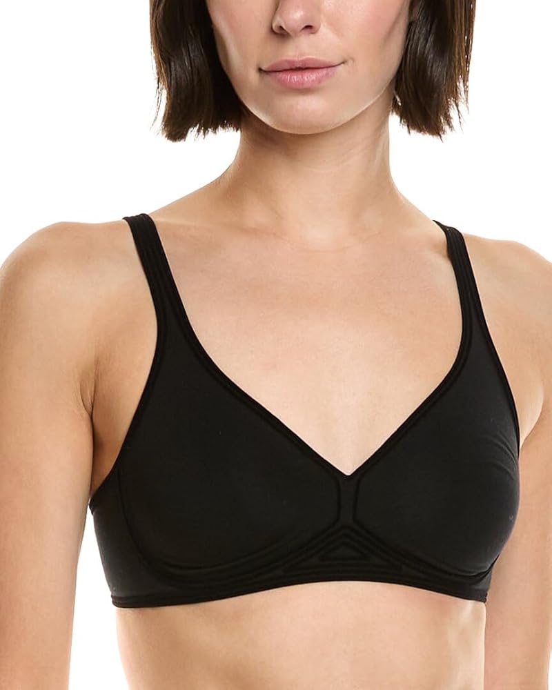 تتميز التقنية الجديدة تمامًا بحافة مخملية معززة مما يجعل حمالة الصدر هذه فائقة النعومة مع دعم مريح وخط عنق عميق حديث. تتولى شرائط السيليكون المتجمعة وظيفة الأسلاك السفلية والمرونة القابلة للتمدد. تبدو مادة القطن ذات الطبقتين طبيعية بشكل خاص على الجلد.