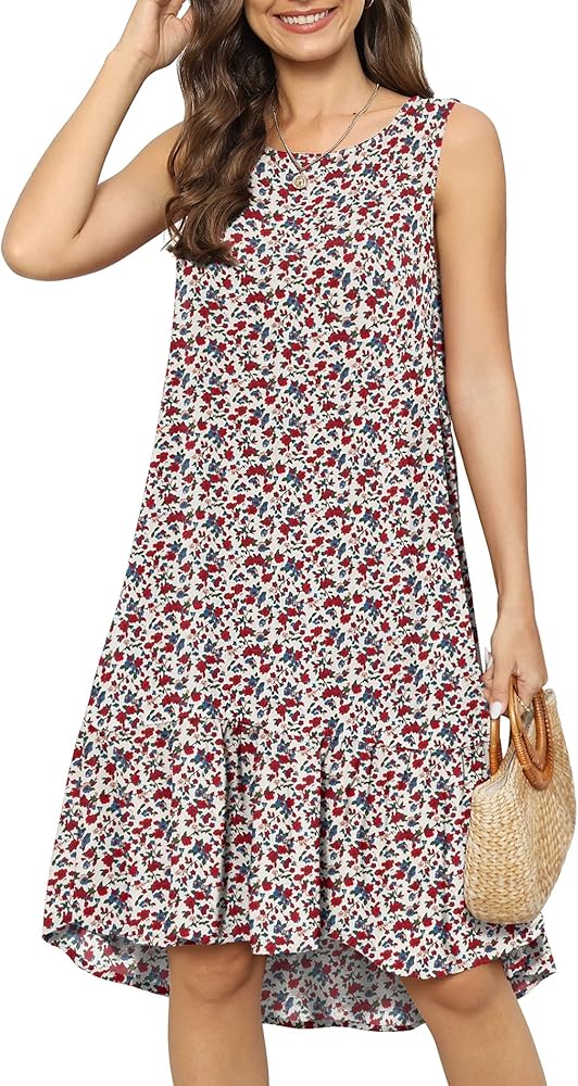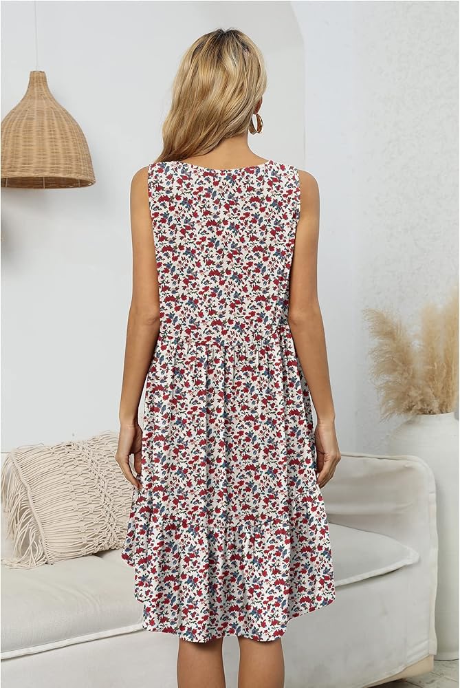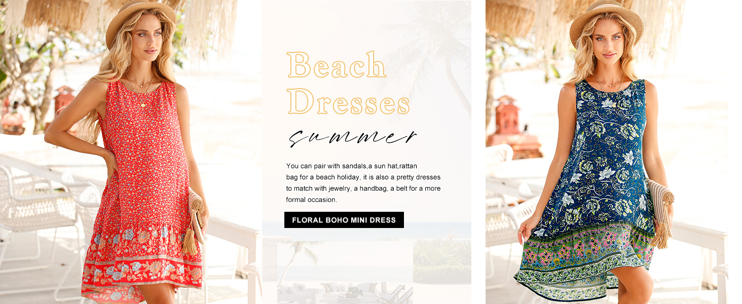 المزايا: فساتين قصيرة للشاطئ صيفية فضفاضة، بدون أكمام، رقبة دائرية، أرجوحة فضفاضة، فساتين قصيرة كاجوال للشاطئ، فستان شمس صيفي، فساتين قصيرة زهرية، فستان على شكل حرف A